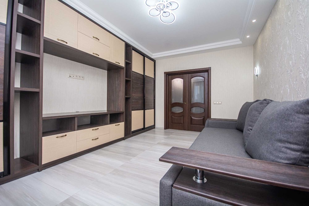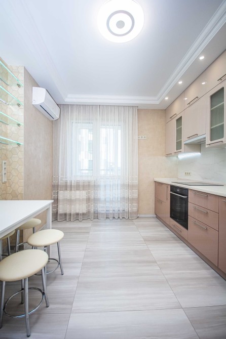 Ремонт виконаний у класичному стилі із натуральних матеріалів. Має роздільне планування.