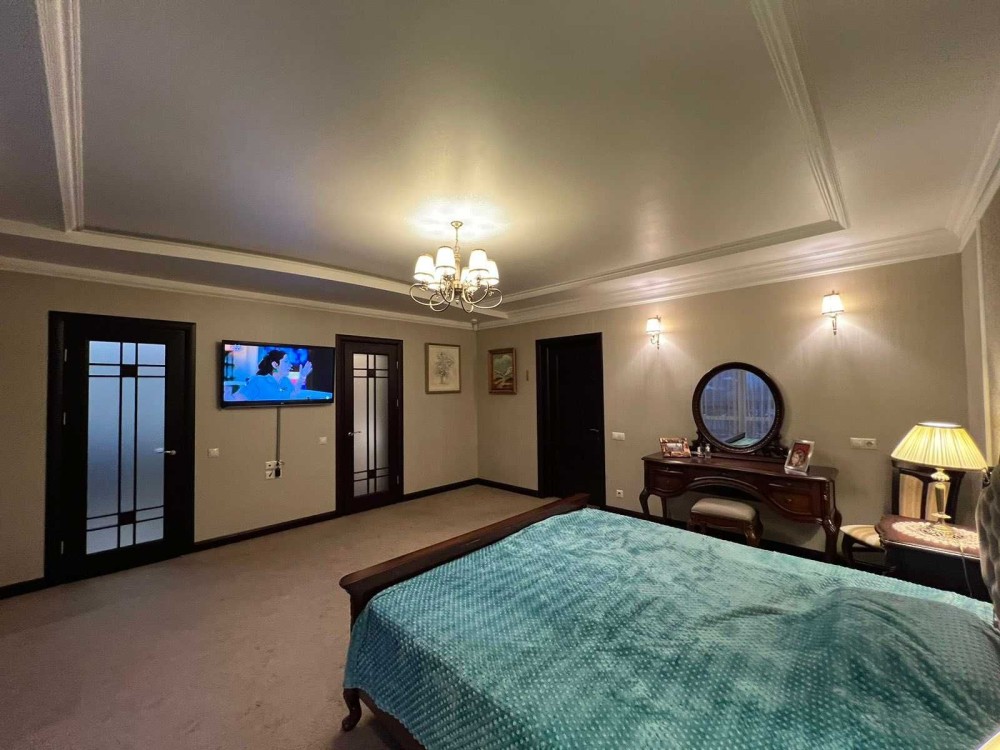 Майстер-спальня з виходом на терасу, великою гардеробною та розкішною ванною кімнатою з джакузі, гідромасажем, гардероб.