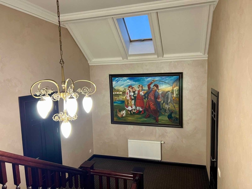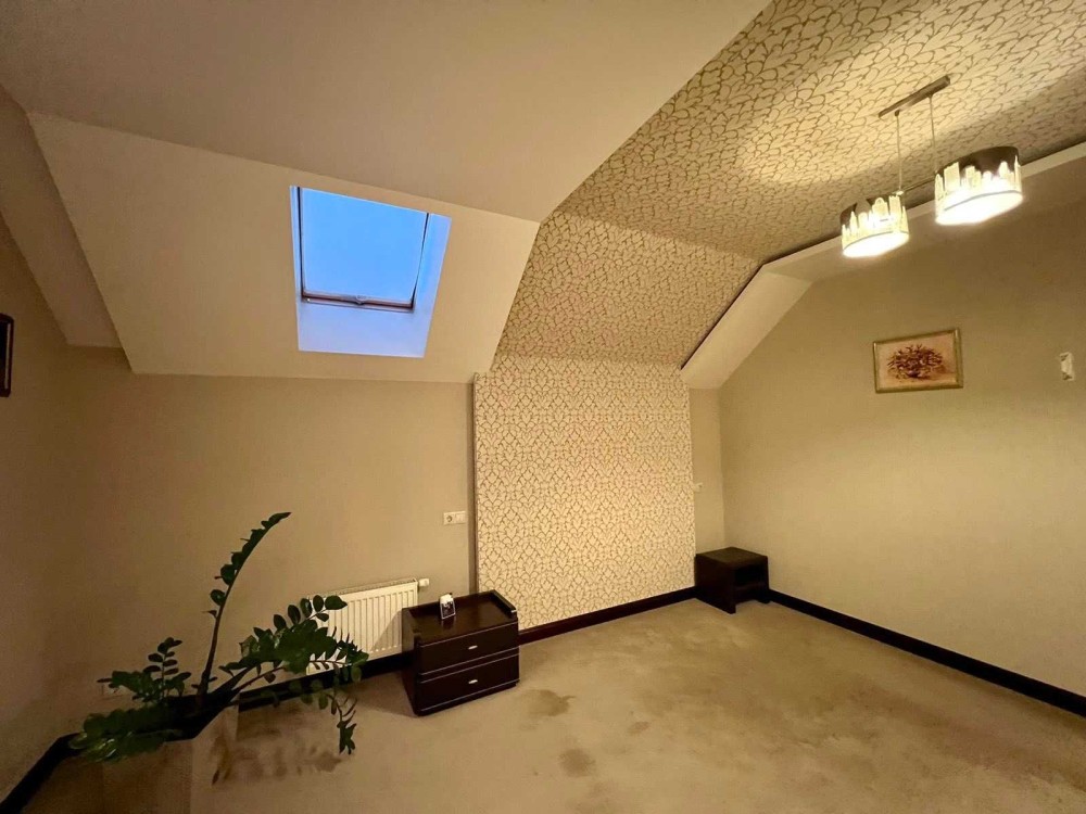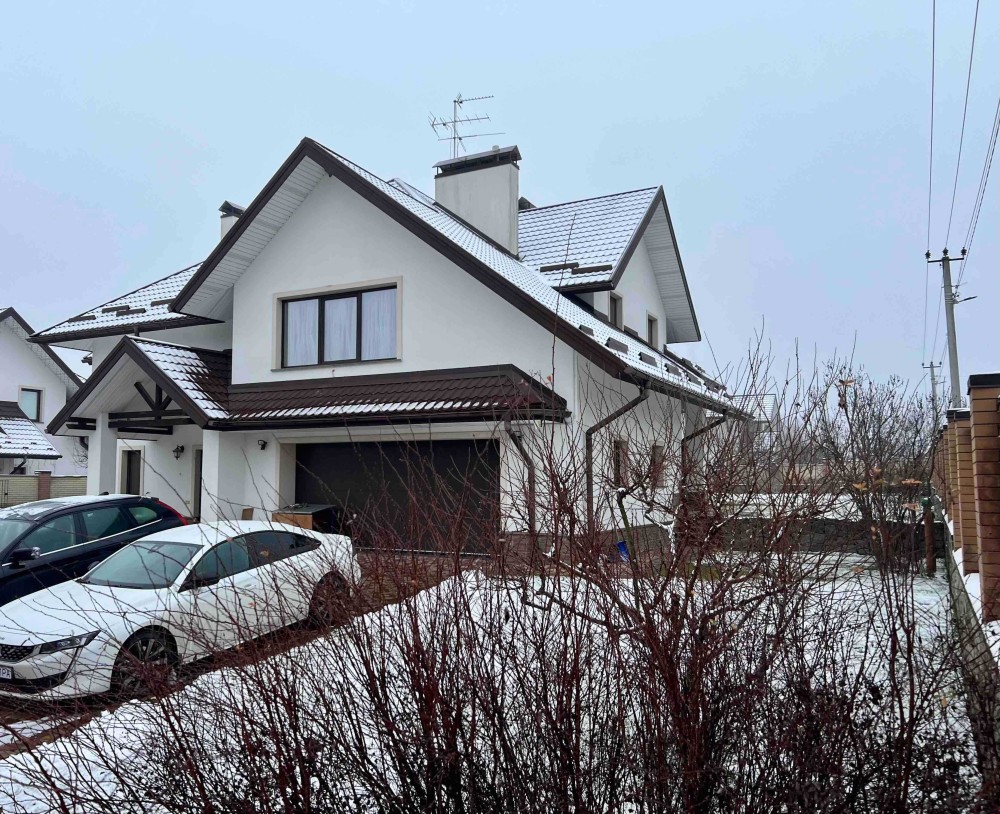 Будинок знаходиться на земельній ділянці в 10 соток. Земельна ділянка приватизована, має прямокутну форму 25 на 40 м, майже горизонтально рівна, різниця по діагоналі складає не більше 30 см по висоті. Будинок має монолітний армований ленточный фундамент. При армуванні фундаменту та стін використовувалась арматура 1,2 см. Стіни виконані з пеностирольних блоків де всередину вставлена арматура і залита бетоном. Перекриття між першим та другим поверхом та горищем виконано з дерев'яних балок 20 на 30см. Будинок покритий металочерепицею. стоять металопластикові вікна та технічні вхідні двері. На земельній ділянці знаходиться приватна водяна скважина та заведена вода в будинок. Будинок підключений до зовнішнього електропостачання з величиною прогнозованої приєднаної потужності 7 кВт напруга приєднання 380 B. Зовнішній розмір будинку по ширині складає 11,5 м, по довжині 13,4 м. Жила площа першого поверху складає 127,29 м². З них кухня складає 32,63 м², зала складає 36,47 м², кімната складає 23,13 м², туалет складає 11,52 м² 52, коридор займає 23,54 м². Висота стелі 3 м. Другий поверх мансанровий, де по площі підлоги має таку саму квадратуру 127,29 м², як і перший поверх, але в кожній висота однієї зовнішньої стіни складає 1,75 м за рахунок нахилу даху. Розташування кімнат ідентичне до першого поверху. Висота стелі 2,75 м. За рахунок пеностирольного покриття стін сам будинок дуже є енергозберігаючим і потребуватиме невеликі витрати на обігрів. Oбігрів будинку планувався електричний, так як будинок має низьку втрату тепла, але і можливі інші варіанти обігріву, такі як газ або комбінації дров'яного каміну та електрообігріву. Газопровід іде по вулиці. За рахунок великих вікон будинок отримує достатньо багато сонця і кімнати всі світлі. Великі кімнати та коридори дають багато креативного простору, щоб створити житло яке підходить власне для вас. Контактні дані WhatsApp: +4917630793718 Email: skorba-oleg@ukr.net Oleg