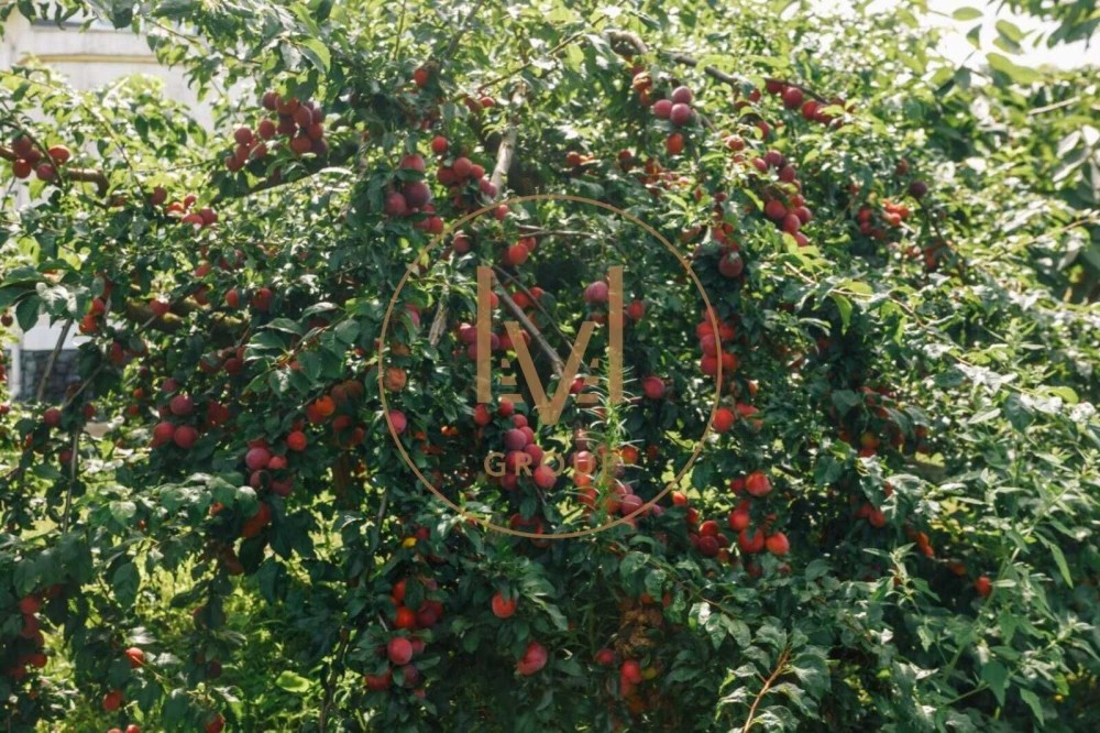 Во дворе много зеленых насаждений от декоративных хвойных до фруктовых. В доме предусмотрен тёплый гараж со входом в дом.