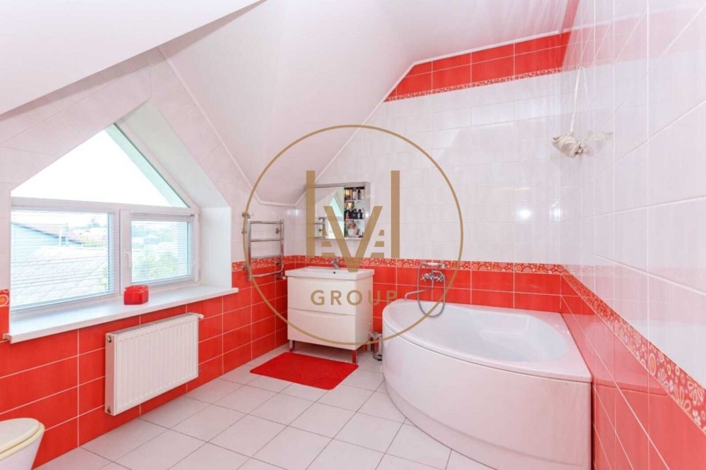 Будинок складається з просторої кухні з виходом на терасу, вітальнею, на другому поверсі 3 спальні, 2 тераси, 3 санвузли, кабінет, підвал (на сьогодні дуже актуально) також в будинку є лазня, господарчі приміщення, своя котельня з двома різними котлами, також на всяк випадок, встановлено буржуйку. Центральне водопостачання та альтернативно свердловина.