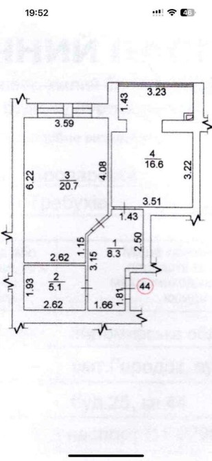 - житлова кімната – 20 кв.