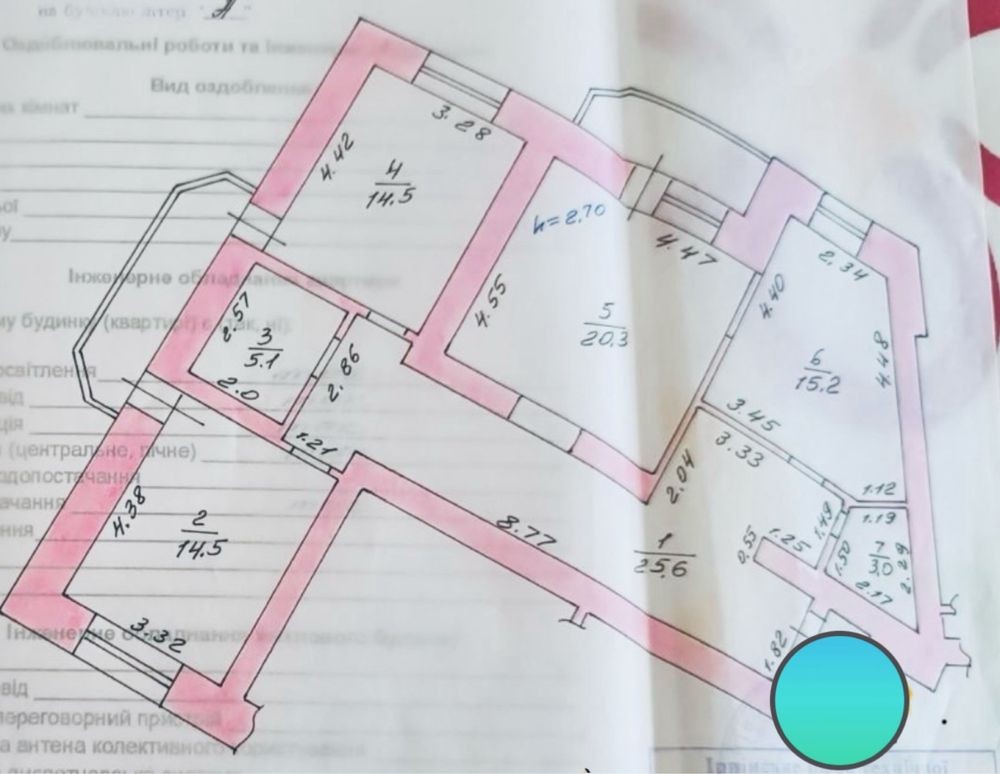 Метраж: 104 м2, кухня 15,2 м2, кімнати 14,5 м2, 14,5 м2, 20,3 м2.