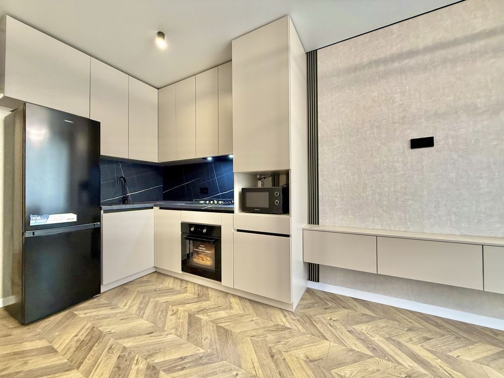 Оренда стильної 1 к кв з кухнею студією в новому будинку ЖК "Файна Таун" в Шевченківському районі, вул. Салютна, 2 Квартира 43 м2 , розташована на четвертому поверсі та складається з передпокою, спальні, великої кухні -студії та санвузла. Вікна квартири виходять в двір. Облаштована всіма необхідними меблями з екологічно чистої деревини та оснащена побутовою технікою: телевізор Samsung Smart 43, кондиціонери в кухні та кімнаті, плита індукційна, вбудований холодильник, духова шафа з функцією мікрохвильової печі, пральна машина з сушаркою. В кухні та ванній кімнаті тепла підлога, високошвидкісний інтернет. ЖК "Файна Таун" це: закрита територія з входом по картці, цілодобова охорона, відеоспостереження, паркінг, підземні контейнери для сміття, зарядні станції для електромобілів та лавки з інтегрованими батареями для підзарядки девайсів, розумне освітлення, яке підлаштовується під час доби та ще багато чого для того, щоб жити з комфортом й ні в чому себе не обмежувати) розповім при перегляді. Зручне транспортне сполучення та розвинута інфраструктура: магазини,спортивні та пішохідні зони ,зона барбекю, ресторани та кафе. Квартира, в якій поєднані комфорт та затишок, шукає своїх порядних орендарів молоду пару або одну людину без дітей та тварин. Перша оренда, квартира вільна.