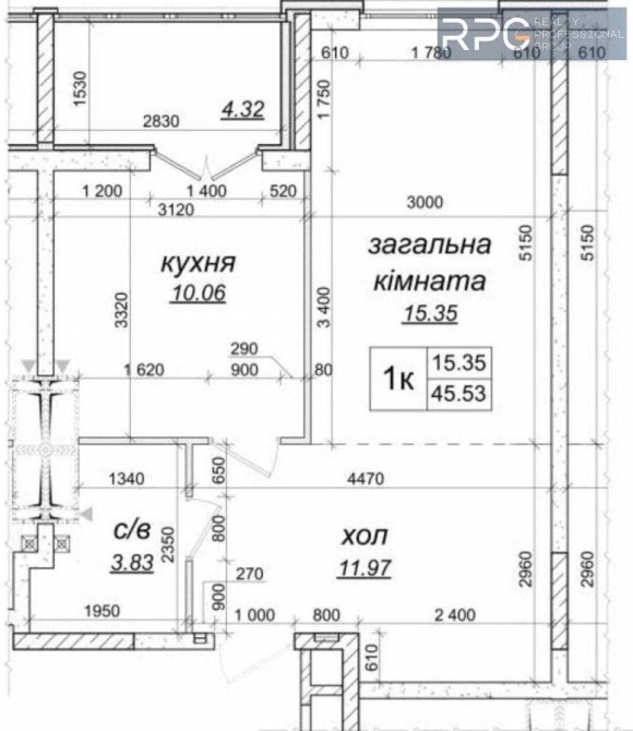 * Висота стель 2, 6м.