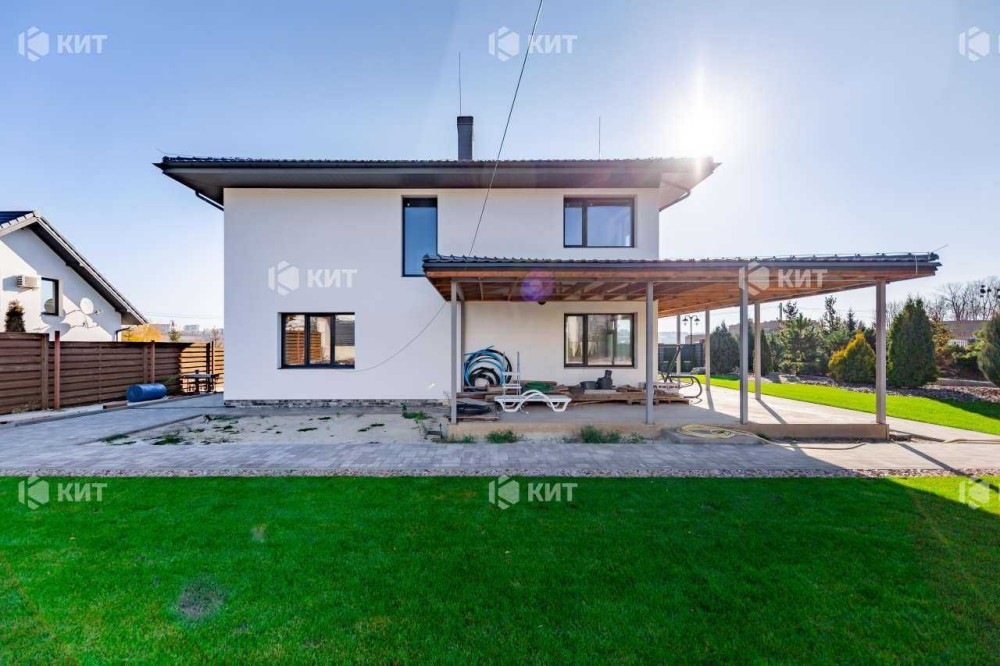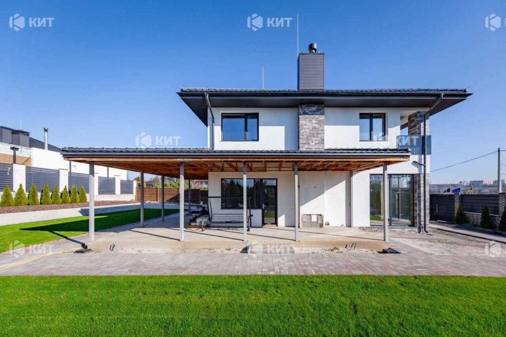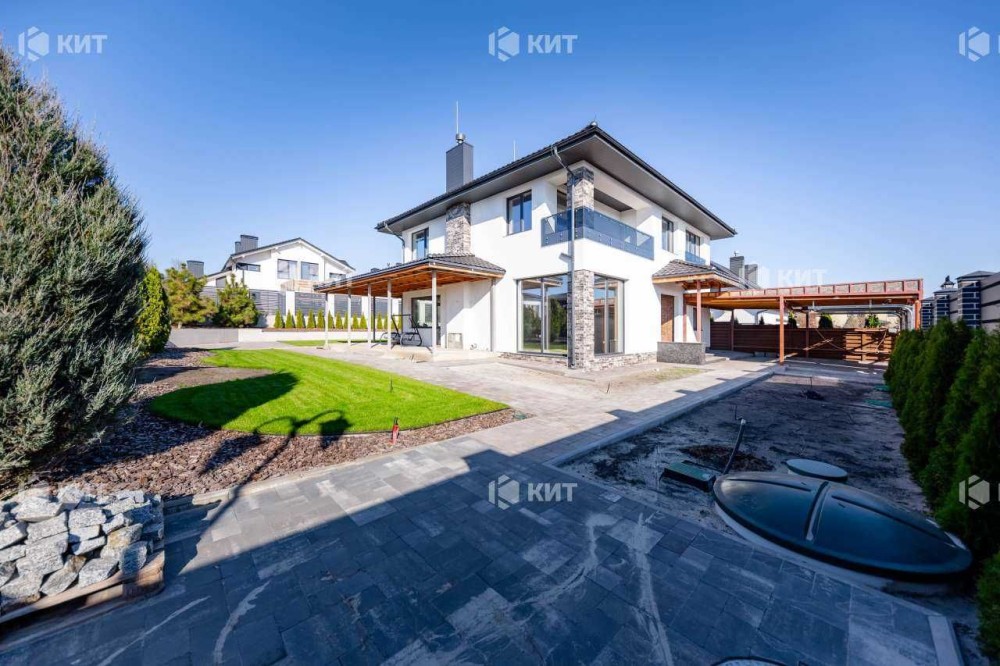 Без Комісії. У Закритому котеджному селищі Шале Грааль. Будинок 210 м2. (Побудований з керамо блоку). Перший поверх: кухня студія з каміном, гостьова кімната (кабінет), сан вузол, топкова. Другий поверх: три спальні, три гардероби, 2 санвузли. Комунікації: світло дві лінії 25 кВт та 10 кВт, вода свердловина, каналізація септик.