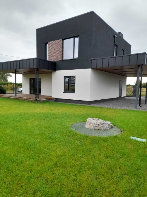 Архітектурне рішення і дизайн будинку виконані в індивідуальному стилі, з екологічно чистих матеріалів, сучасних технологій будівництва та інженерії. Фундамент монолітний. Стіни газобетон, повнотіла цегла М-100. Перекриття монолітні. Висота стель 3.4-3,2м. Покрівля утеплення+ПВХ мембрана. Утеплення стін 100мм базальтова вата з декоративним оздобленням фасаду. Огорожа. Автополив. Автономна каналізація. Озеленення. Свердловина.