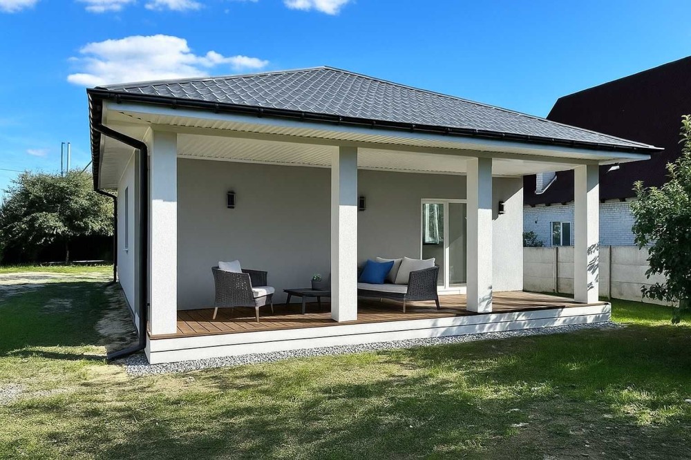 Сучасний двоповерховий таунхаус з власним двором та паркомісцем в с. Зазим'я. Просторий та комфортний будинок, який стане ідеальним місцем для життя вашої родини. Планування та площі: – Перший поверх — 54 м2; – Другий поверх — 55 м2; – Можливе індивідуальне планування під ваші побажання; – Власний задній двір від 0,6 до 1,5 сотки; – Місце для паркування авто; Комунікації: – Власна свердловина у кожному будинку; – Переливний септик; Терміни: – Здача об’єкта — кінець серпня; Локація: – 500 м до супермаркетів АТБ та Фора; – 1 км до школи та нового дитячого садочка; – 500 м до лісу; – 5 км до річки Десна; Будівництво та матеріали: – Стіни з піноблоку D500 (товщина 300 мм); – Утеплення стін — пінопласт 100 мм; – Перекриття — залізобетонні плити; – Бетонні сходи на другий поверх; – Дах утеплений мінватою 150 мм, покрівля з металопрофілю; – Пластикові енергозберігаючі вікна;