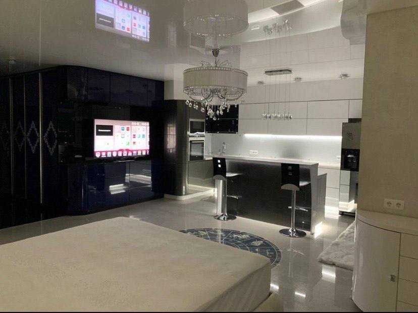 Здається шикарна простора квартира-студіо з панорамними вікнами в довгострокову оренду, в Голосіївському районі, вул. Саперно-Слобідська 24.