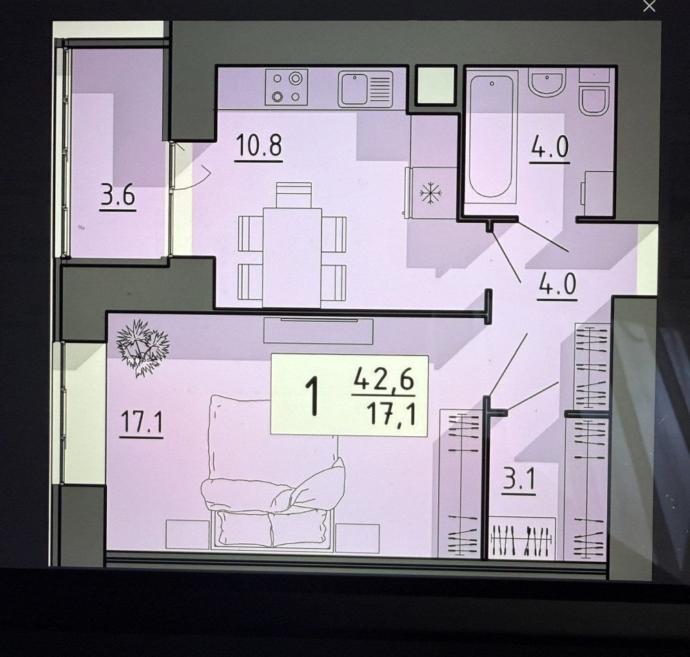 • Общая площадь 42 м2