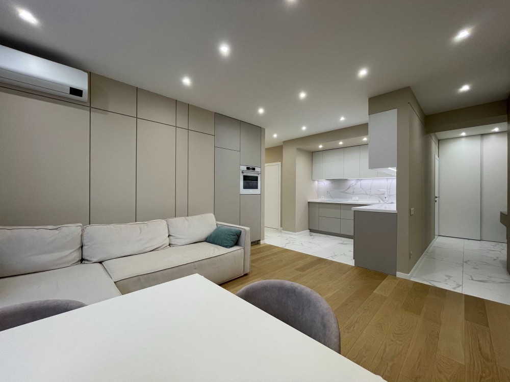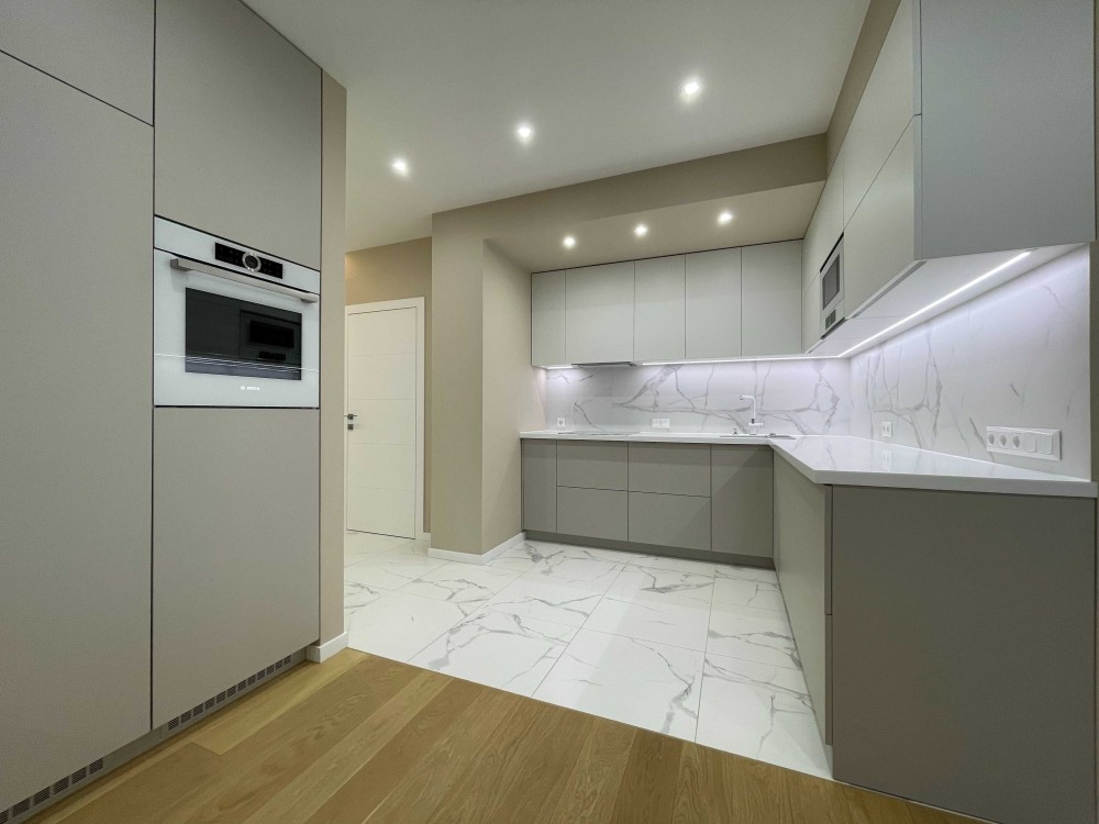 Дизайнерський та якісний ремонт. зробили для себе. Вся побутова техніка Bosch (холодильник, морозильна камера, посудомийна машина, поверхня, духова шафа, мікрохвильова піч, бойлер, пральна та сушильна машина). На підлозі паркетна дошка. Тепла підлога. Дуже дорогі фасади, фурнітура Blum. У квартирі встановлена система Ajax.