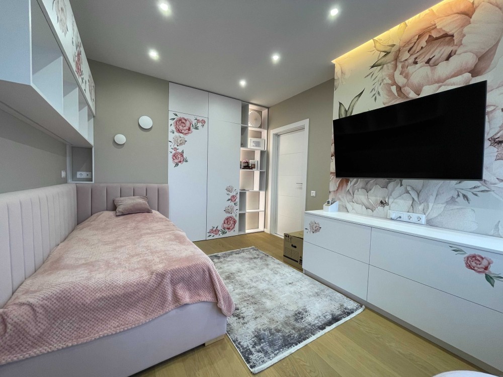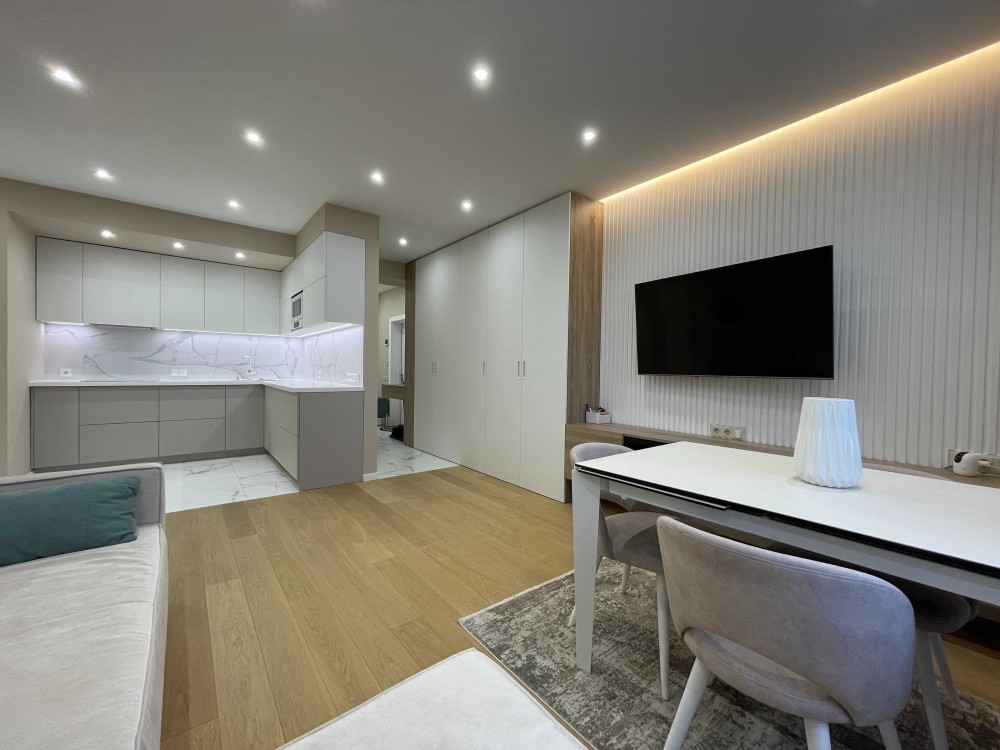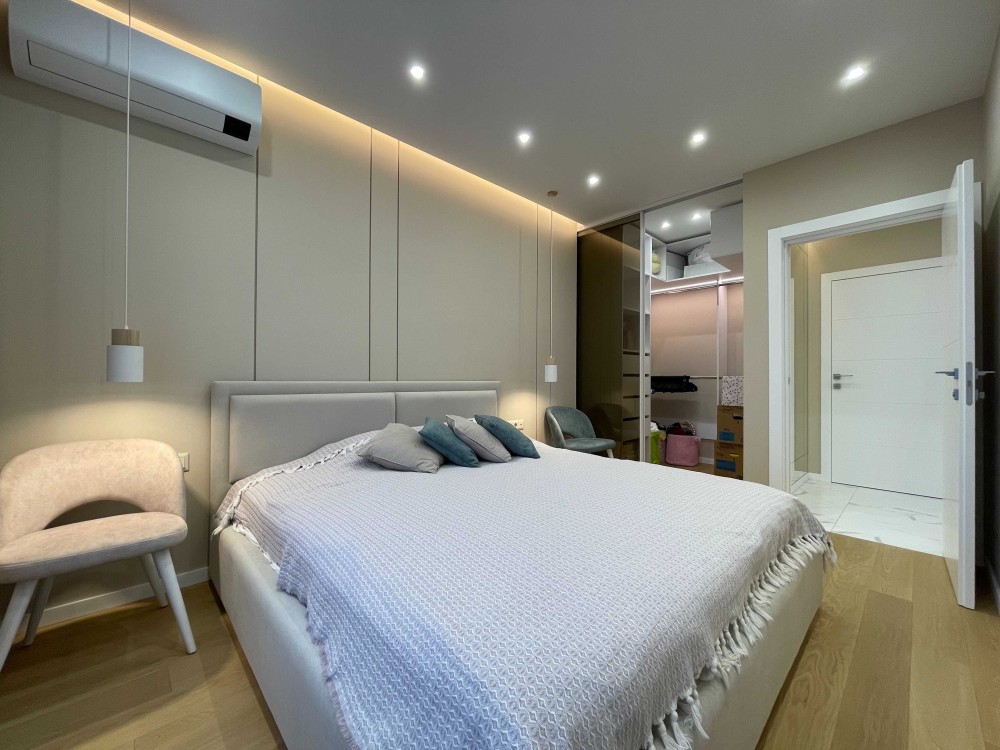 Зручне планування 2 окремі кімнати та кухня вітальня. Багато вбудованих шаф, та окрема гардеробна в спальні.