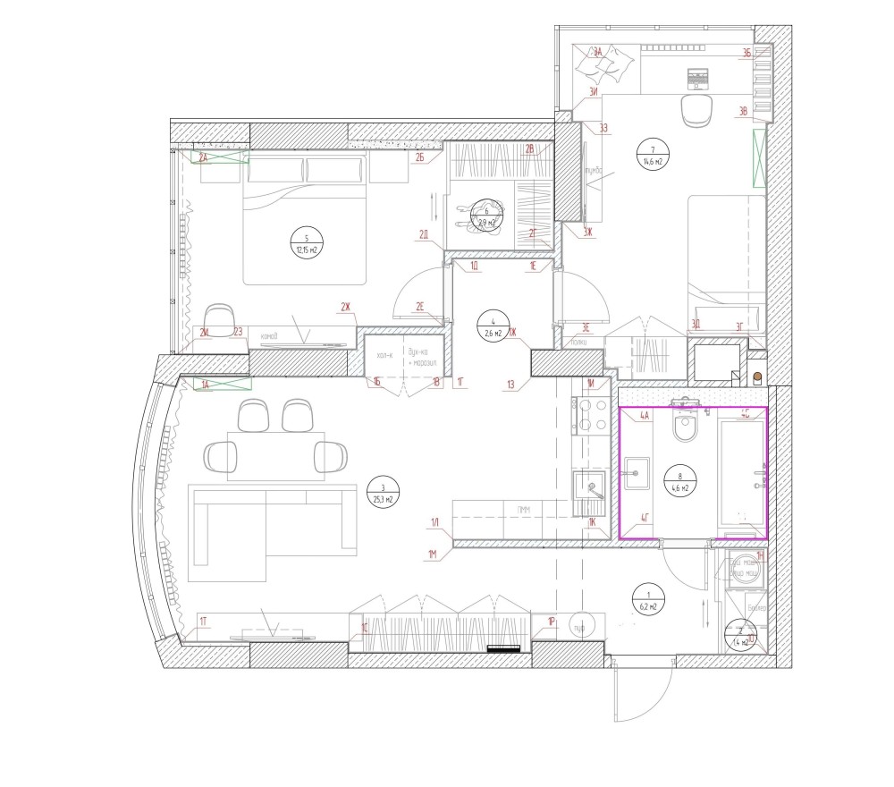• Трехкомнатная