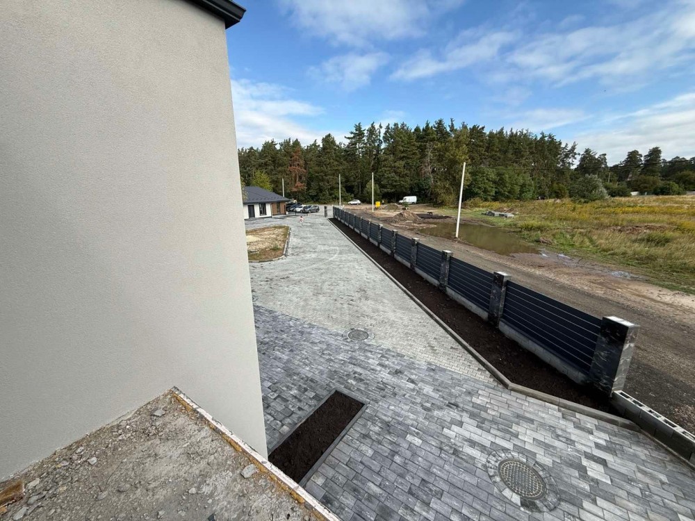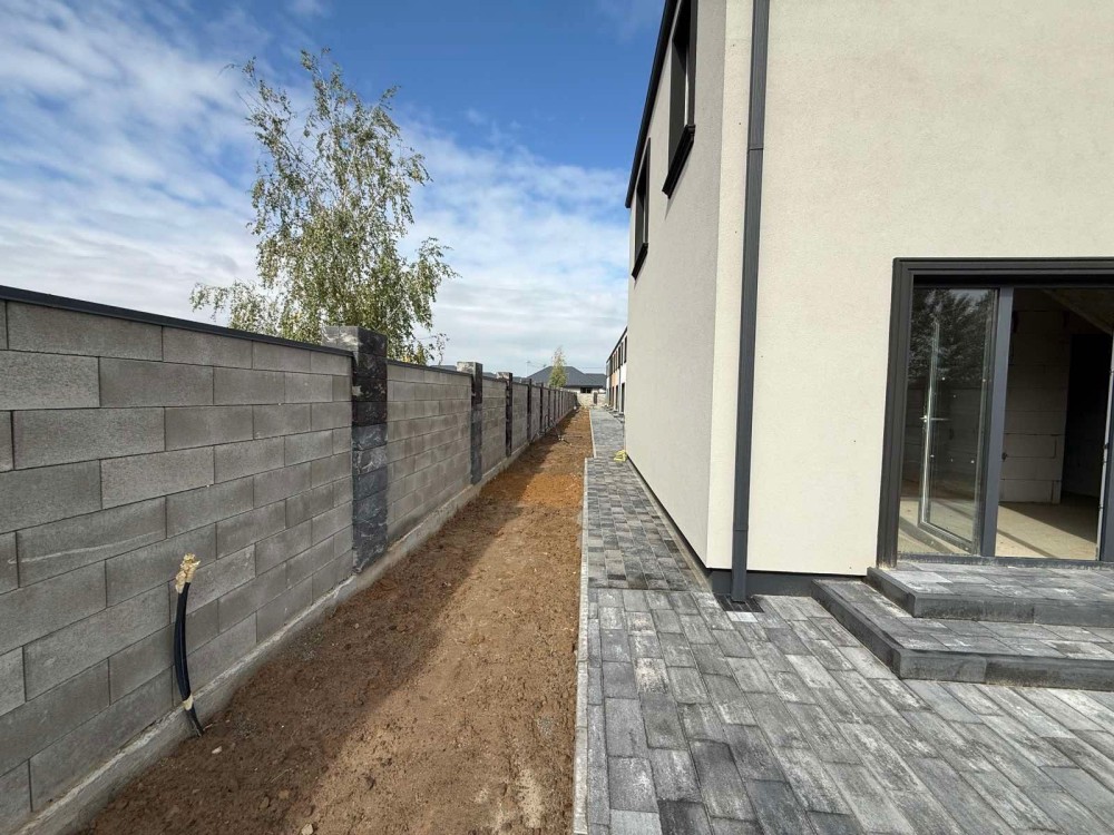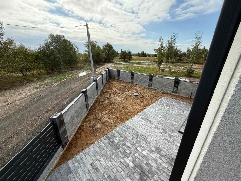 Продам новий будинок 2022 року на Нижньому ДНСі. Два поверхи плюс підвал і холодне горище. Газоблок Д-400 вкритий металочерепицею, обштукатурений і пофарбований, перекритий монолітним залізобетоном. Площа будинку 104 метри. Перший поверх: велика кухня 30 кв.м. з панорамним склінням і виходом на задній двір, передпокій, коридор, перший санвузол. Другий поверх: три житлові кімнати, другий санвузол, сходовий марш. У підвалі котельна, на горище розкладна драбина. Заведена вода зі свердловини 85 метрів, водовідведення в центральну каналізацію. Електроенергія 20 КВт. Змонтована система водяних теплих підлог і радіаторів, електричний котел на 10 КВт. По усьому будинку виконана розводка електрики. Стіни перетерті, металопластикові вікна з теплими скосами, в обох санвузлах розведена і змонтована сантехніка, укладений кахель, душова кабіна на першому і ванна на другому поверсі. На першому поверсі поли викладено плиткою, на другий закуплено і залишиться ламінат, також закуплені і залишаться вуличні світильники та деякі інші матеріали. Залізобетонні сходи на другий поверх викладені керамогранітом. Ділянка 2.5 сотки, обгороджена, відкатні автоматичні ворота. Двір вимощений тротуарною плиткою, змонтовано відведення стічних вод в дренажний колодязь. Залитий фундамент і колони під бесідку і барбекю. З вікон і бесідки відкривається чудовий панорамний краєвид на зелену зону річки Рось. Ціна: 160.000 у.о. Торг. Запрошуємо до співпраці продавців і орендодавців нерухомості. Агенція нерухомості пропонує повний перелік операцій з нерухомістю та супровідною документацією. Купівля-продаж, оренда, обмін житлових та комерційних об’єктів, земельних ділянок. Оцінка майна ринкова та для оподаткування. Технічні паспорти. Узаконення самочинного будівництва, добудови, перепланування. Початок будівництва та ввід в експлуатацію. Землевпорядні роботи: кадастровий номер, приватизація, розподіл, об’єднання, зміна призначення. Кредитування під заставу нерухомості. Безкоштовно приймаємо заявки від продавців та орендодавців. Гарантія конфіденційності. Юридичний супровід. м.Біла Церква Тел.(097)-879-80-99