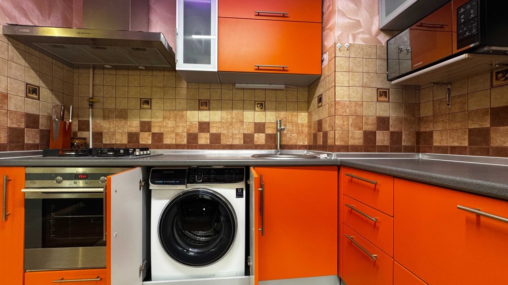 • Квартира обладнана всім необхідним: бойлер, пральна машина, газова плита, духовка, мікрохвильова піч, великий холодильник