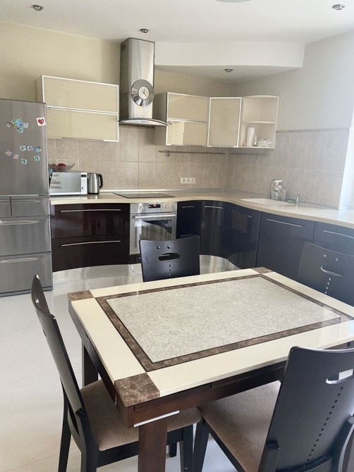 Пропонується дворівнева квартира з терасою та видом на Дніпро ЖК Seven Осокорки — унікальний варіант для тих, хто цінує простір, комфорт і панорамні краєвиди столиці. Квартира розташована на 25–26 поверхах 26-поверхового будинку за адресою: Дніпровська набережна, 20А. Загальна площа — 139 м2, житлова — 63 м2. Це простір, створений для великої та щасливої родини. Перший рівень: – просторий хол — 9 м2; – кухня-вітальня — 44 м2 із панорамними вікнами від підлоги до стелі, звідки відкривається захопливий вид на Дніпро; – гостьовий санвузол — 1, 5 м2. Другий рівень: – три спальні: 10, 5 м2, 18 м2 та 23 м2 — кожна з виходом на терасу; – гардеробна — 8 м2; – просторий санвузол — 8, 8 м2; – головна перевага — тераса 35 м2 з панорамним видом на Дніпро та зелені пагорби Києва. Це місце для ранкової кави, вечірніх посиденьок і затишних зустрічей. Квартира світла, сонячна, з великими вікнами та сучасним плануванням. Інфраструктура ЖК Seven: Комплекс закритого типу з цілодобовою охороною та підземним паркінгом. Усередині — затишний двір із дитячими та спортивними майданчиками, зеленою зоною та доріжками для прогулянок. У пішій доступності: ТЦ River Mall, ТЦ Аркадія, супермаркети Novus і Сільпо, ресторани, набережна Дніпра. Зручна транспортна розв’язка та близькість метро Осокорки роблять локацію ще привабливішою. Чому варто обрати саме цю квартиру? – дворівневе планування з чітким розділенням на зони; – простора кухня-вітальня для зустрічей і свят; – велика тераса з панорамою на Дніпро й Київ; – сучасний ЖК з продуманою інфраструктурою. Дворівнева квартира з терасою та видом на Дніпро ЖК Seven Осокорки – не просто квадратні метри — це простір для життя, відпочинку й натхнення. Не втрачайте шанс — такі квартири в ЖК Seven з’являються рідко!