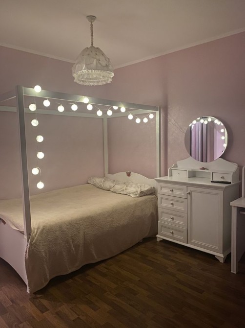Планування:кухня-вітальня (оформлена одним великим простором),2 спальні,2 санвузла(душ і ванна),велика гардеробна кімната,прихожа,балкон з вітражними в підлогу вікнами.