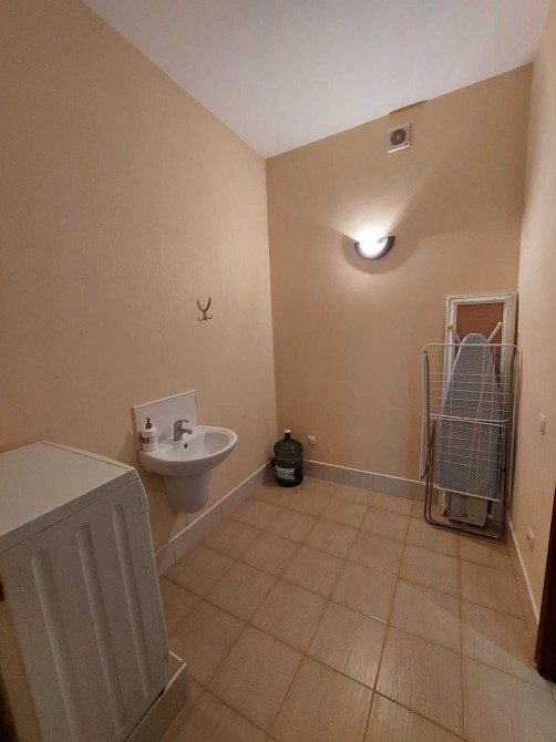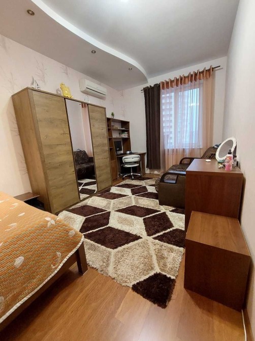 Монолітно-каркасний цегляний будинок. Роздільна. Три окремих кімнати, хол, 2 санвузли. Один з санвузлів використовувався як пральня та гардеробна (але покупець, звісно, може облаштувати під свої потреби). Також великий хол можна переоблаштувати під вітальню. Засклена лоджія. Ламінат, плитка, металопластикові вікна, бронедвері. Стеля - 3 м.