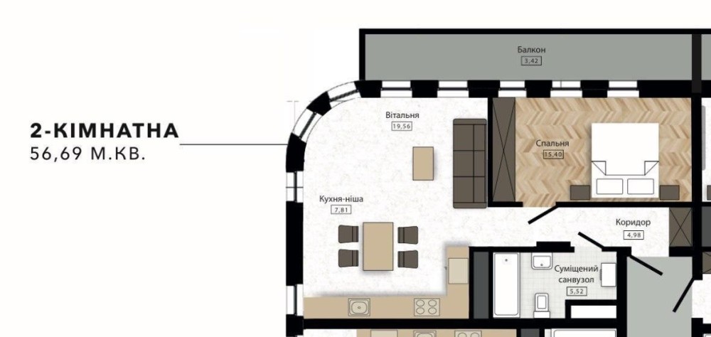 - 9 поверх: 56,69 м/кв.