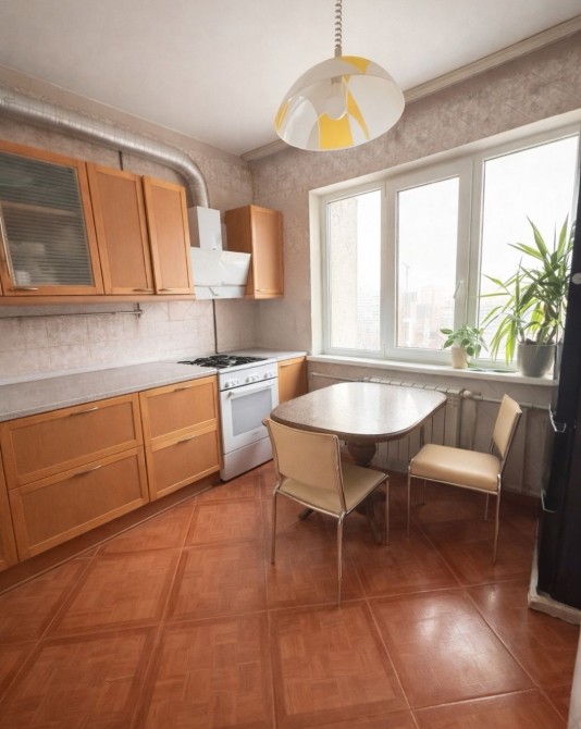 Кухня простора із деревʼяним гарнітуром.Покриття підлоги-плитка і паркет.Встановлені нові склопакети-шумо-татеплої ізоляції.