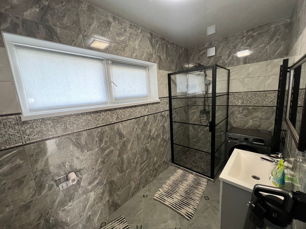 • Санвузол із душовою кабіною та пральною машиною