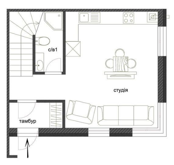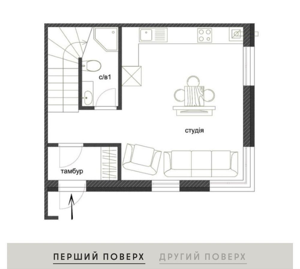 - 2 санвузли, кухня-вітальня з виходом у власний двір