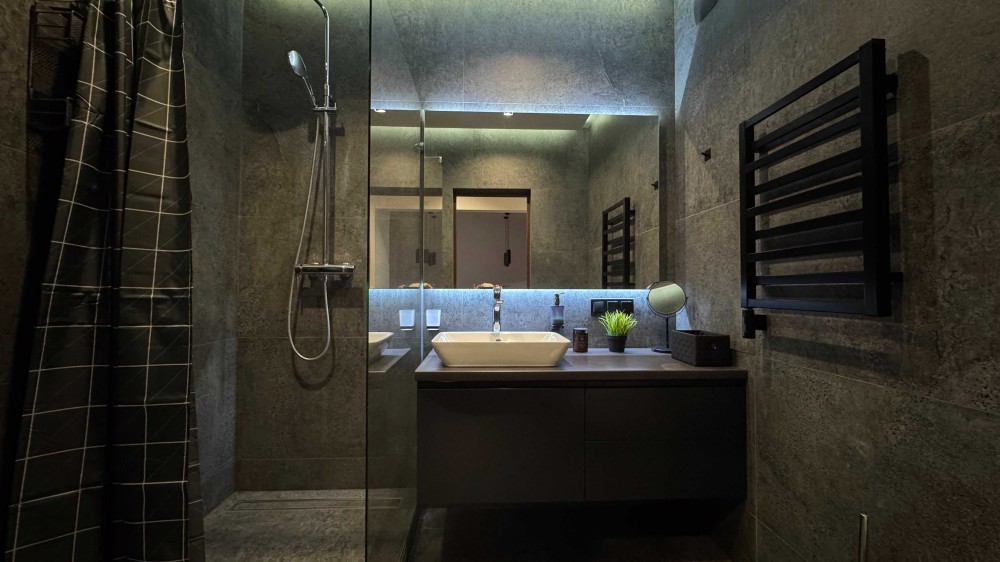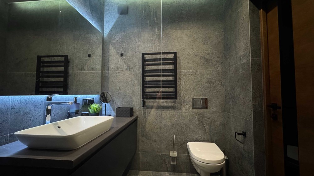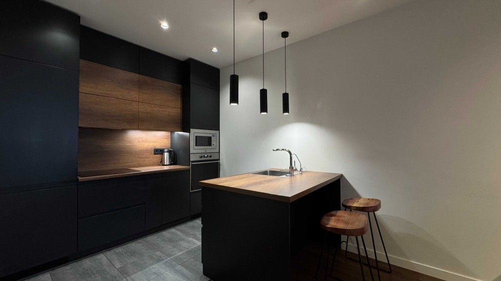 • обладнана побутовою технікою від провідних виробників (варильна поверхня, посудомийна машина, холодильник, чайник, пральна машина з функцією сушіння – BOSCH, мікрохвильова піч та духова шафа – Teka, кондиціонери Cooper Hunter)
