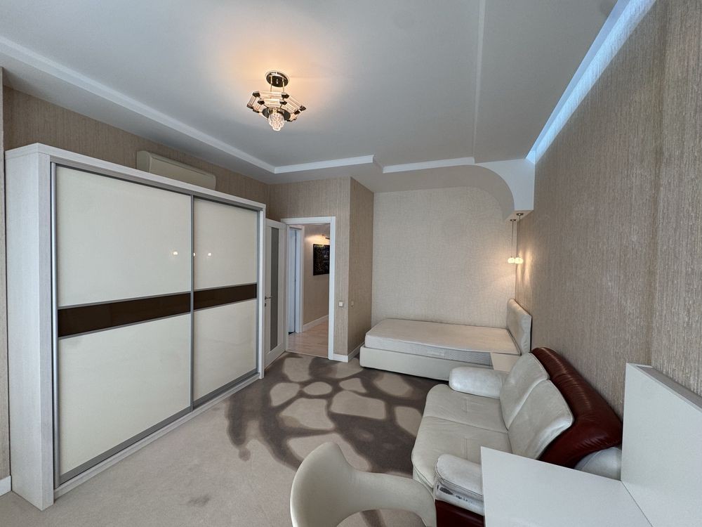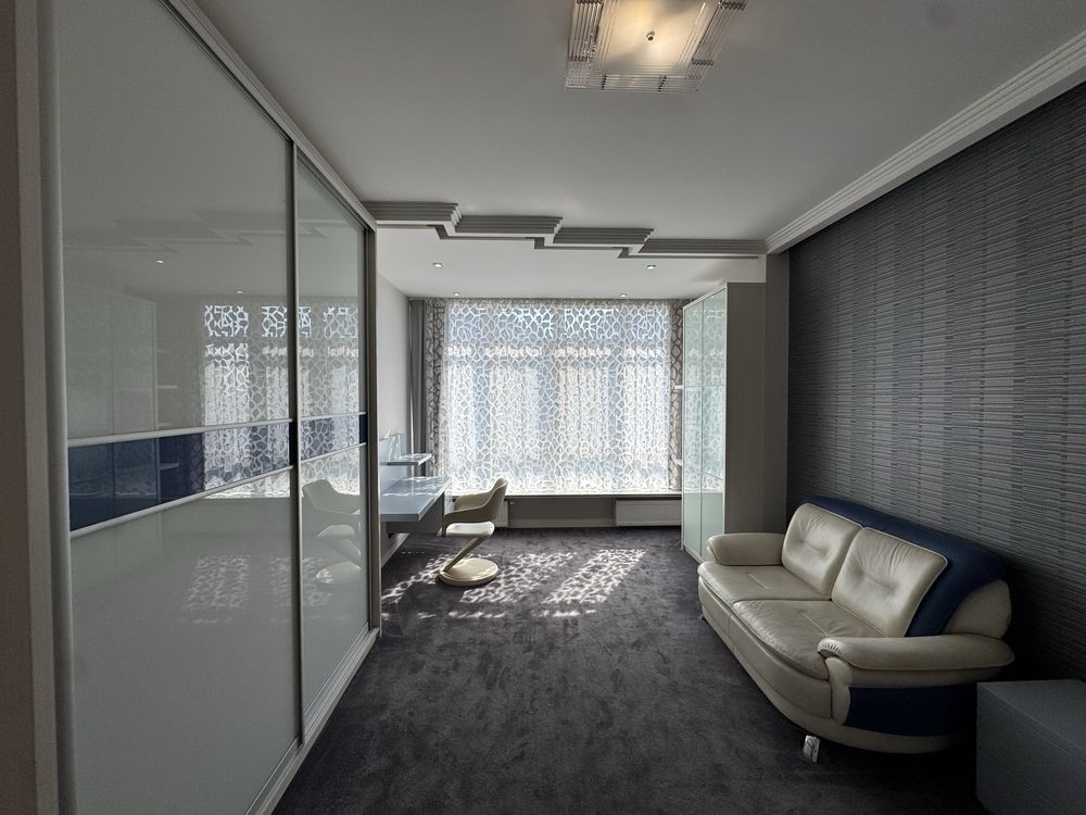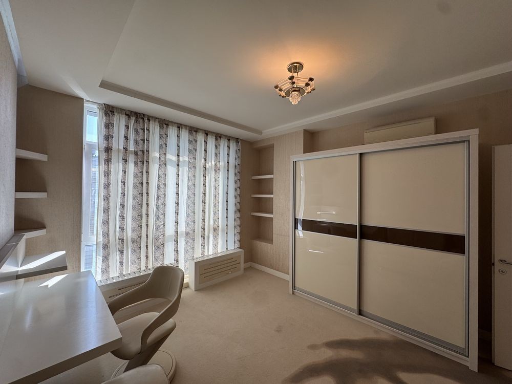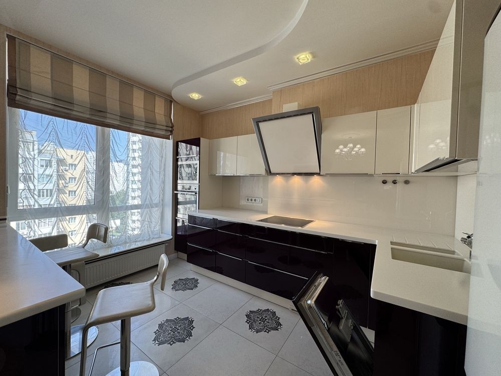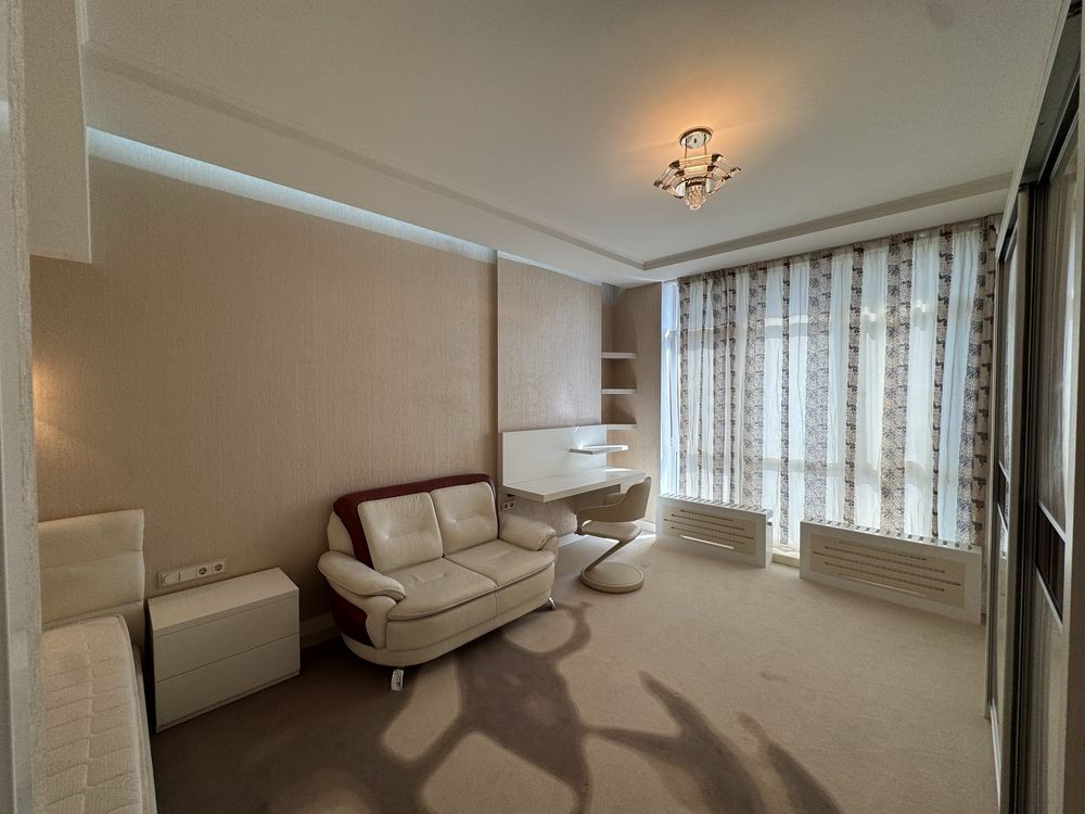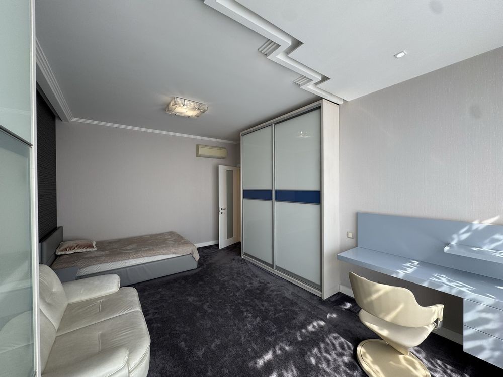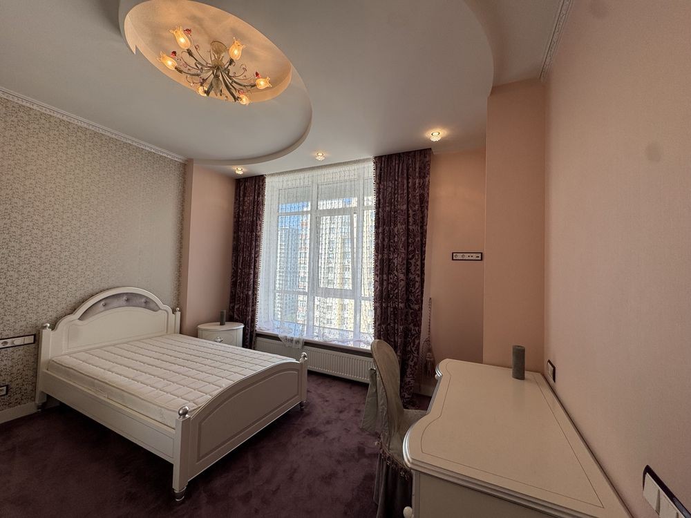 • Три дитячі кімнати з шафами, робочими зонами та диванами. Панорамні вікна з видом на Батьківщину-Мати, прапор України та Києво-Печерську Лавру.