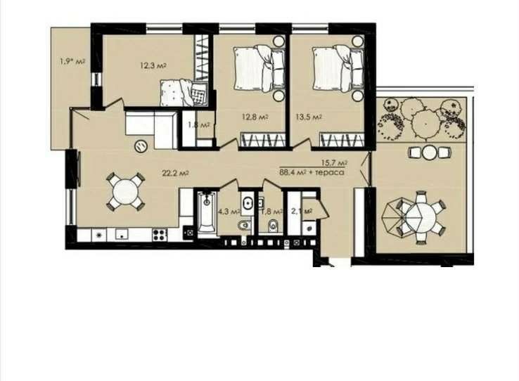 • Общая площадь 89 м2