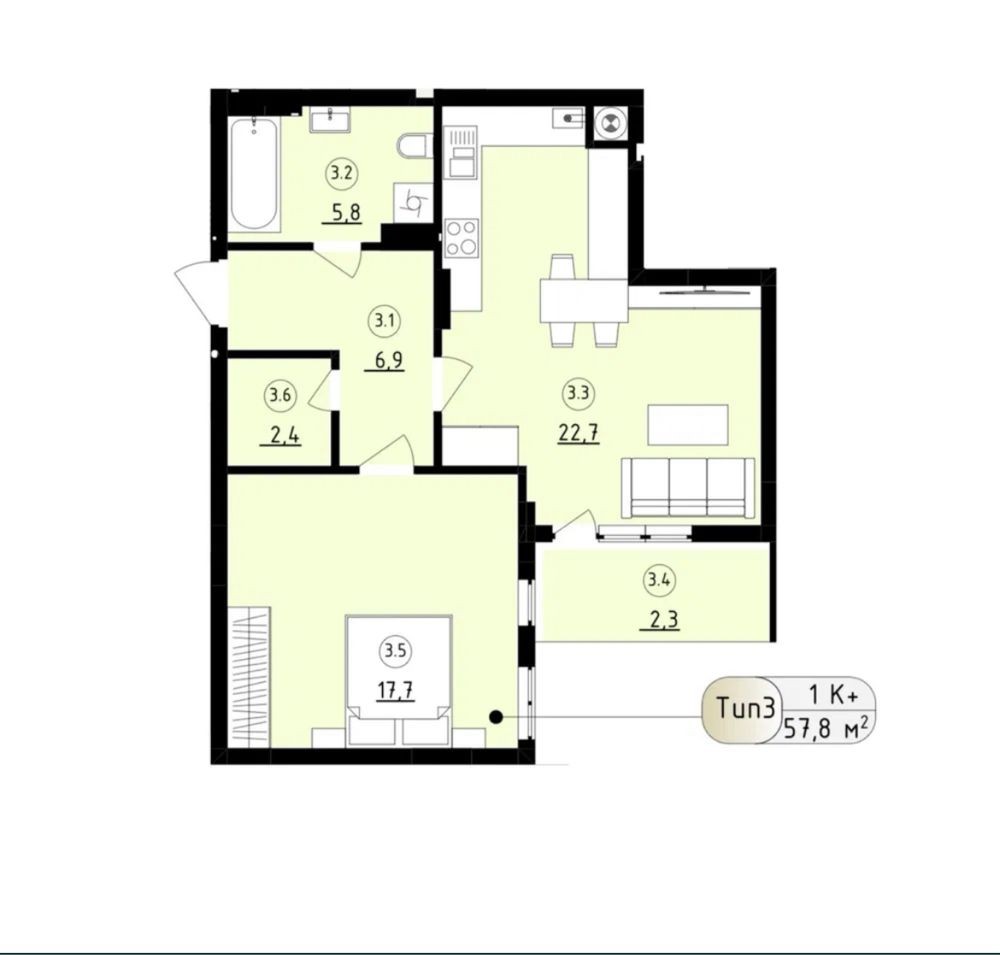 • Общая площадь 58 м2