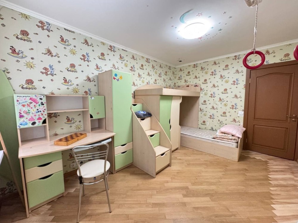 Всі кімнати окремі, кондиціонер, двоспальне ліжко, розкладний кутовий, великий диван, робочий кабінет, кладова-гардеробна.