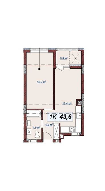 Площа: 43.6м2.