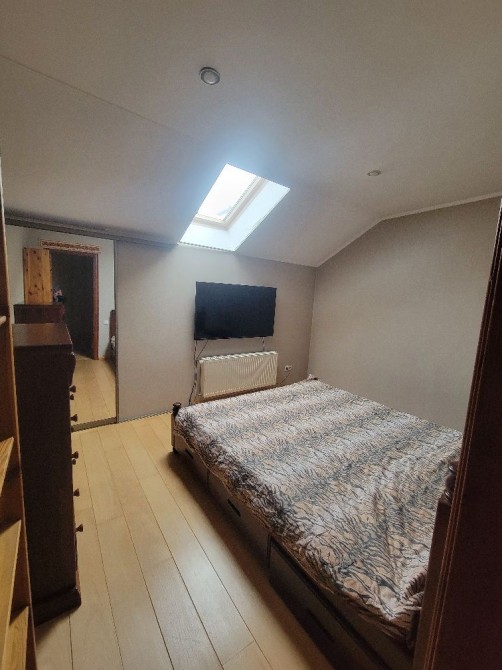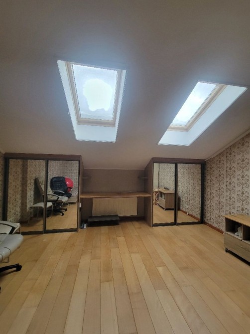 Квартира з двома повноцінними великими ваннами на кожному з поверхів (суміщені великі ванні кімнати що включають: ванна+туалет+пральна машина+додаткову меблюВанноїКімнати на кожному з рівнів). Ванна на другому рівні – містить 2-місну ванну (розрахована на двох персон шириною 140 см). Все зроблено якісно, бо початковий ремонт після здачі робили спеціалісти високого класу і все робилось для себе. Квартира жодного разу нікому не здавалась. Кварира з повноцінною великою кухнею на першому поверсі, що продовжується додатковою лоджею-кімнатою з розкладним диваном (на 2 персони). Кухня містить посудомийну машину. Також з можливістю зібрати вбудовану кухню на другому поверсі в великій кімнаті 25 кв.м. (там зроблені додаткові підводи гарячої та холодної води і відводи каналізації, а також підведена окрема електрика для фартука другої кухні) Кондиціонери встановлені на обох рівнях. Квартира дуже затишна. В спальні на другому поверсі мебля з натурального дерева та великий сучасний телевізор (Бельгія). Всі кімнати оздоблені великими вбудованими шафами для одягу. Інтернет проведений провідний (езернет) в кожну кімнату, а також і кімнату-лоджію. Сходи на другий поверх містять вбудовані шафи та шухляди. Другий поверх має довгий коридор та додаткову вбудовану шафу як продовження сходів.. 2 кімнати другого поверху на половині стелі мають мансардний ухил де розташовані 3 великих мансардних вікна датського виробництва.