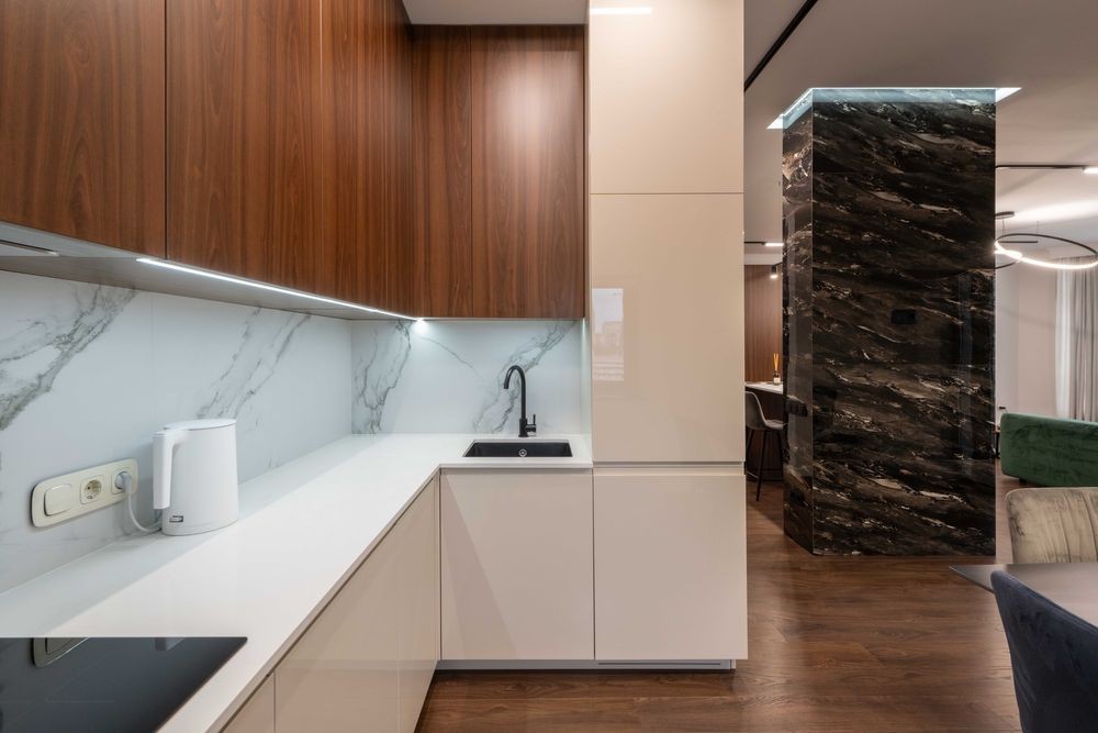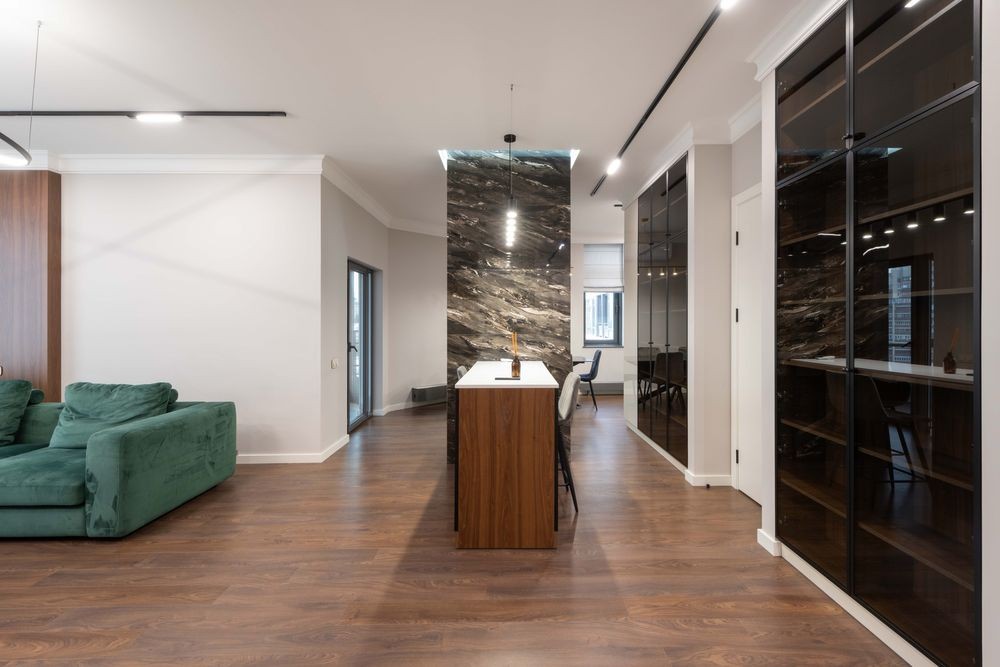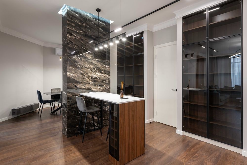 - простора кухня-студіо з барной стійкою;