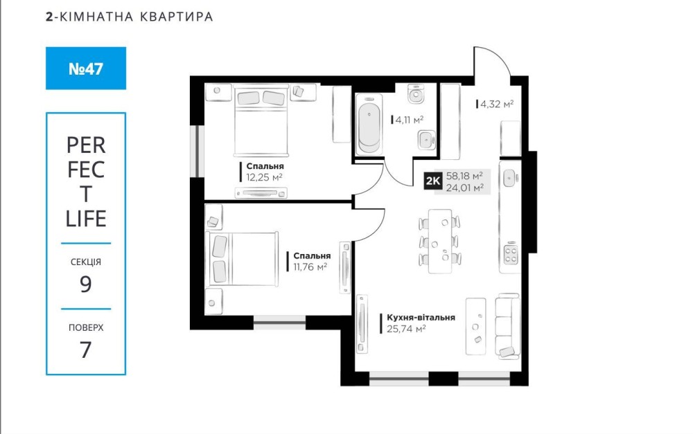 Продаж 2-к квартири у ЖК "Перфект Лайф"