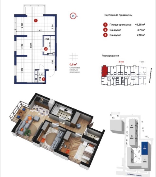 БЕЗ КОМИССИИ! Академгородок двухкомнатная квартира ЖК «4U» - фото 2