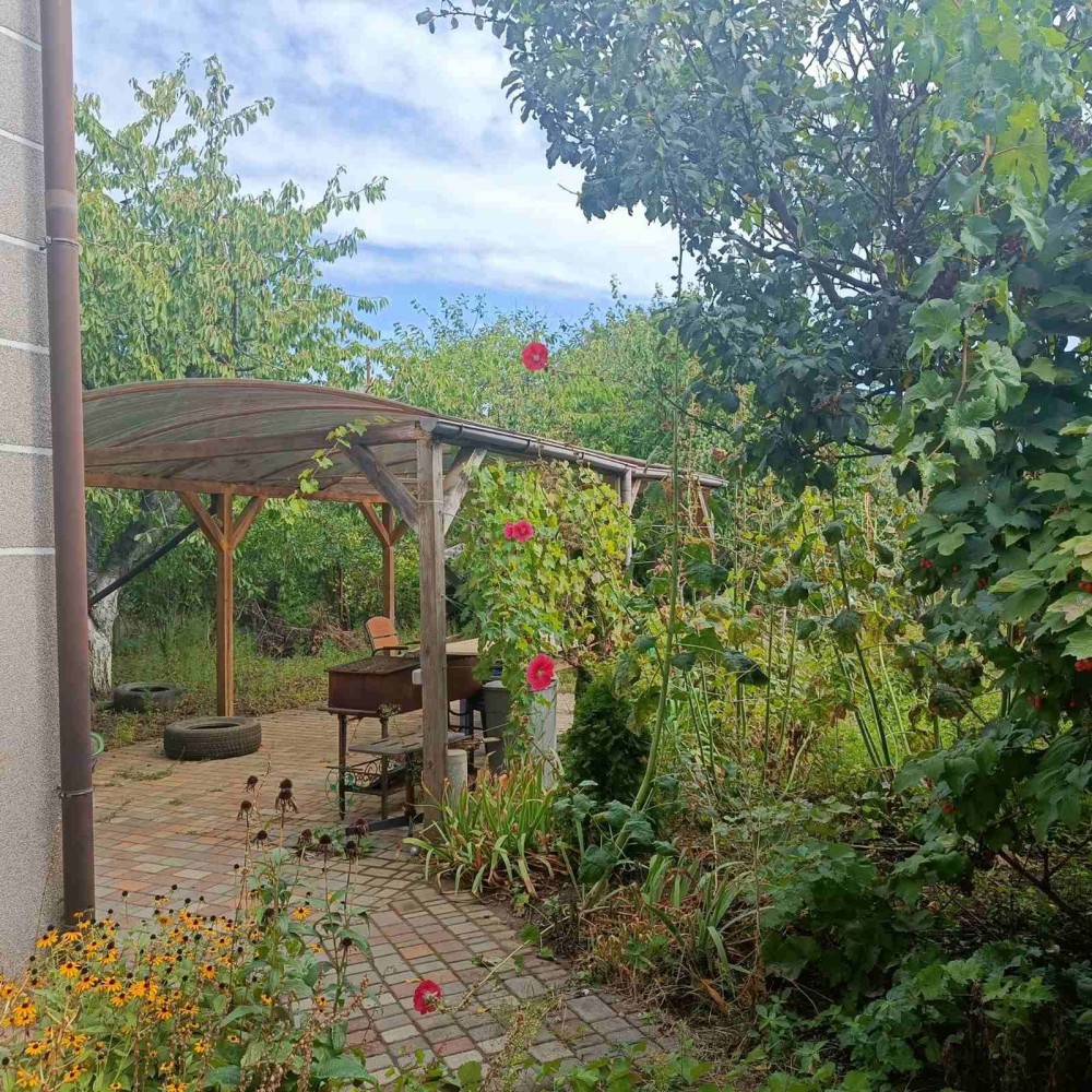 Участок 6соток с садом, мангальной зоной и крытой беседкой. Есть два паркоместа на участке. Будки для животных.