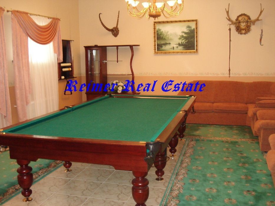 приміщення: більярдна з каміном і гараж на чотири машини.
