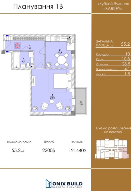 • Общая площадь 55 м2