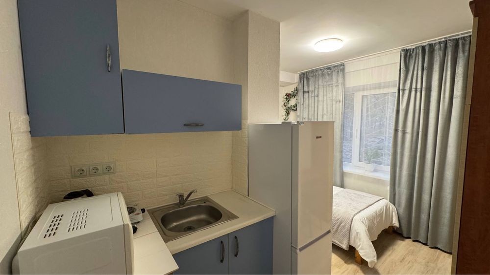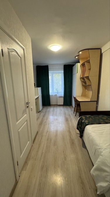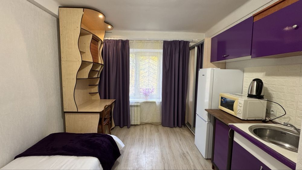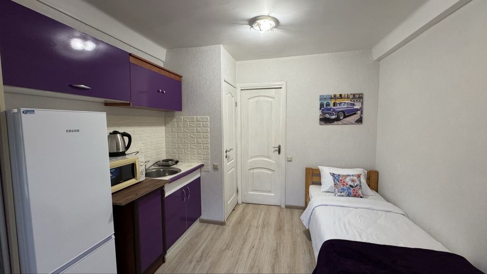 В кожній кімнаті є своя зона кухні, ліжко, письмовий стіл