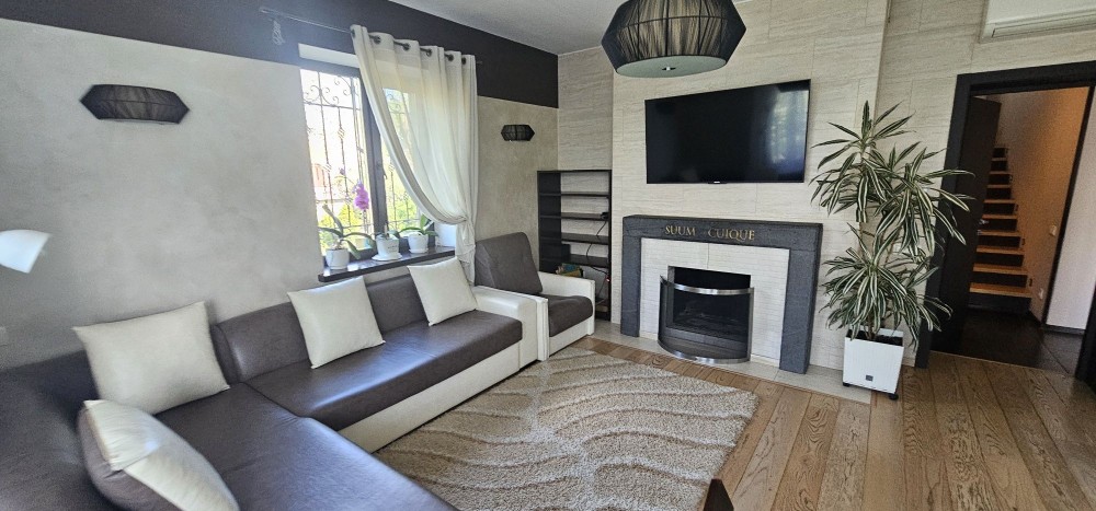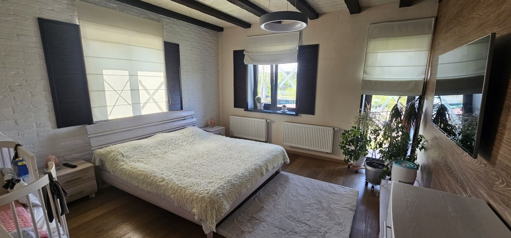 Будинок, 3 поверхи, 6 кімнат. Площа ділянки 8 соток. Планування кімнат Роздільне. Газ природний. Холодна вода - свердловина, гаряча вода - електричний бойлер. Опалення котел комбінований. У будинку є Телевізор, DVD програвач, Праска, Фен, Шафа, Холодильник, Ліжко, Пральна машина, Мікрохвильовка, Посуд, Кондиціонер, Сигналізація, Джакузі, Душова кабіна, Посудомийна машина, Камін. Своя каналізація -септик. Загальний стан будинку - Дизайнерський ремонт. Інтернет оптоволоконний. Без комісії.