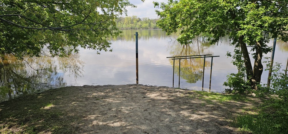 Метро Левобережная, Русановские Сады, левая сторона к воде.