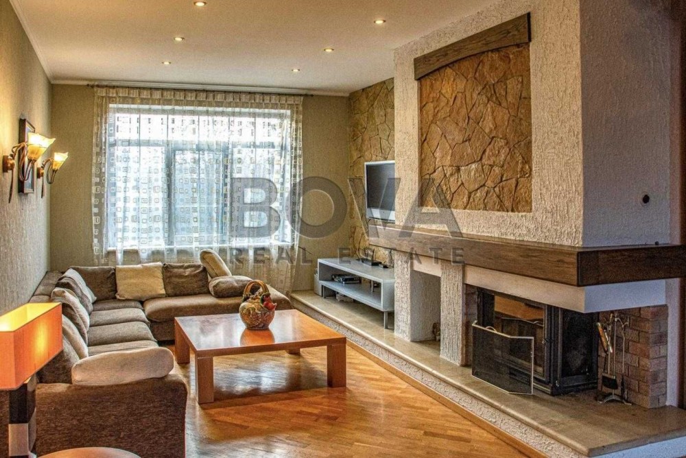 Три спальні (основна з лоджією), кабінет, дві ванних кімнати, хол, бібіліотека, вітальня з каміном, кухня-столова, літня тераса з кухні.