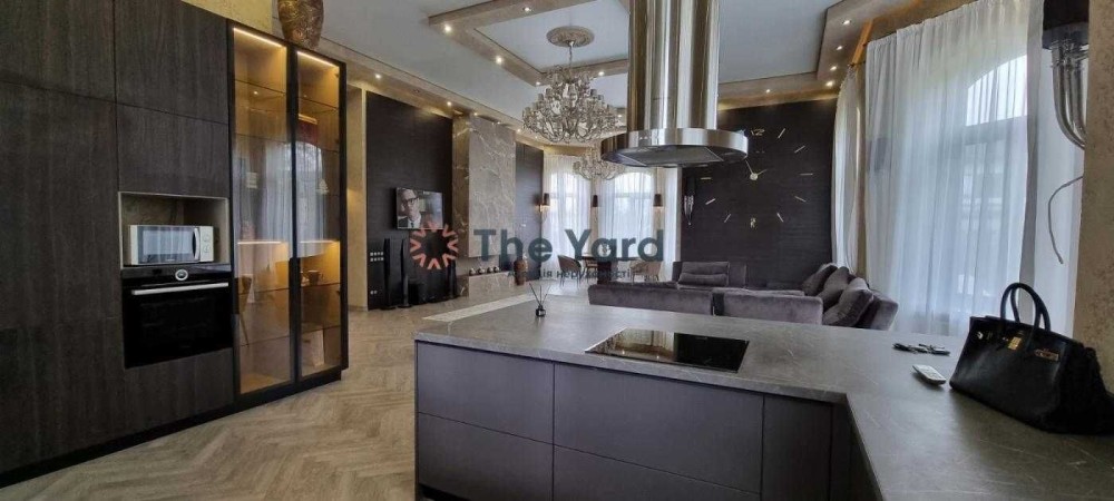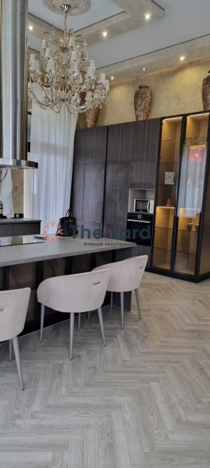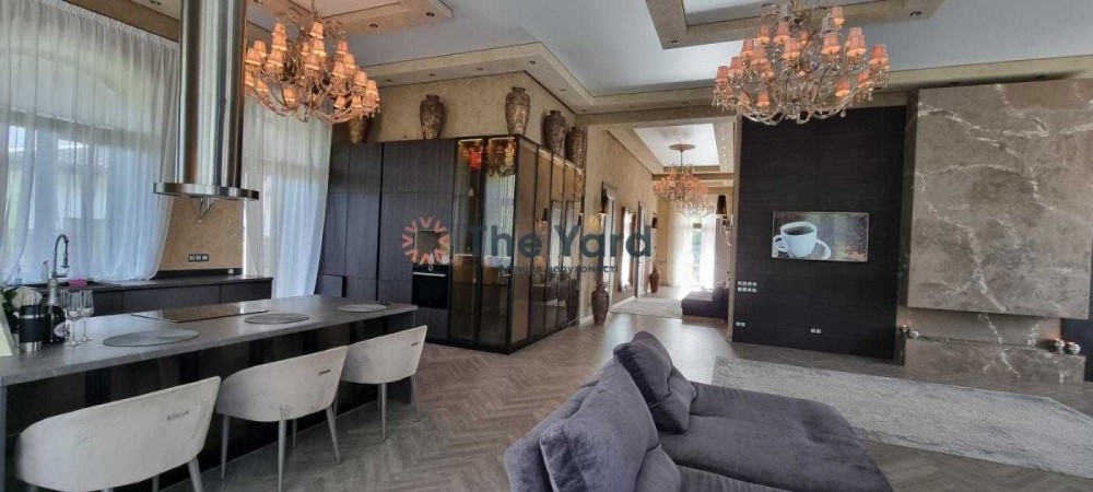 Дизайнерський ремонт виконано у 2020 році, будинок укомплектований італійськими меблями Elisabeth De La Vega, кухня Poggenpohl, освітлення Masiero, Massiv, Ipe Cavalli, сантехніка VilleroyBoch, гардеробні Zanetti, система очищення води Organic. Стелі будинку 4,3 м, що надає будинку багато природного світла та простору. В будинку покладена паркетна дошка в узор французької ялинки, встановлена тепла підлога. На задньому дворі будинку розташована зона барбекю та відпочинку, по периметру будинку розташовані тераси загальною площею 200 м2.
