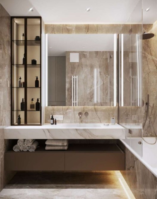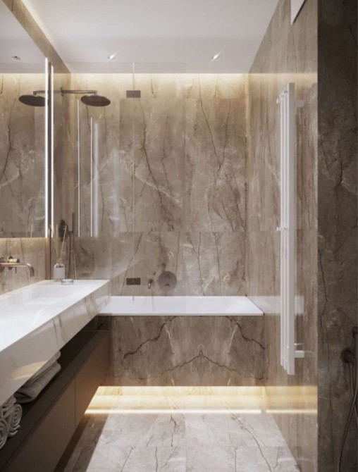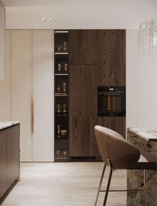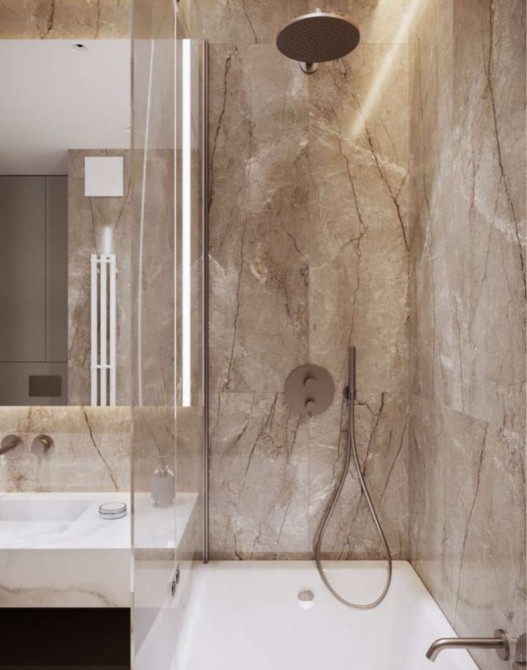 У квартирі є мастер-спальня(з гардероб і санвузлом з ванною), простора кухня-вітальня, гостьовий санвузол та передпокій. Повністю мебльована та укомплектована технікою від світових виробників.