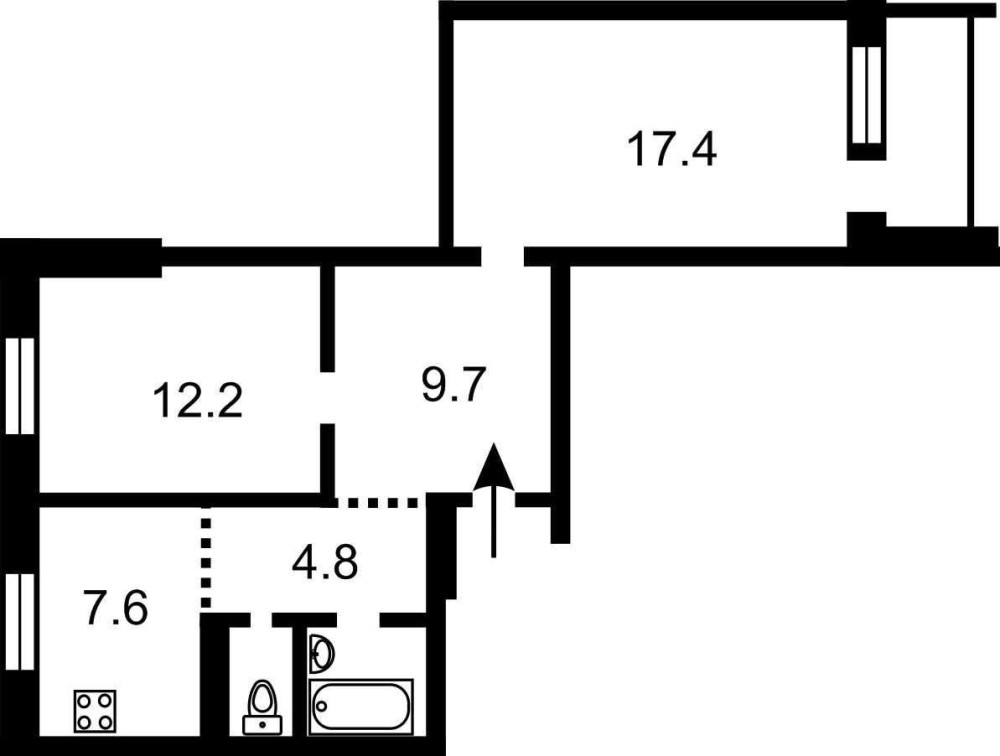 • Площадь кухни 7.6 м2