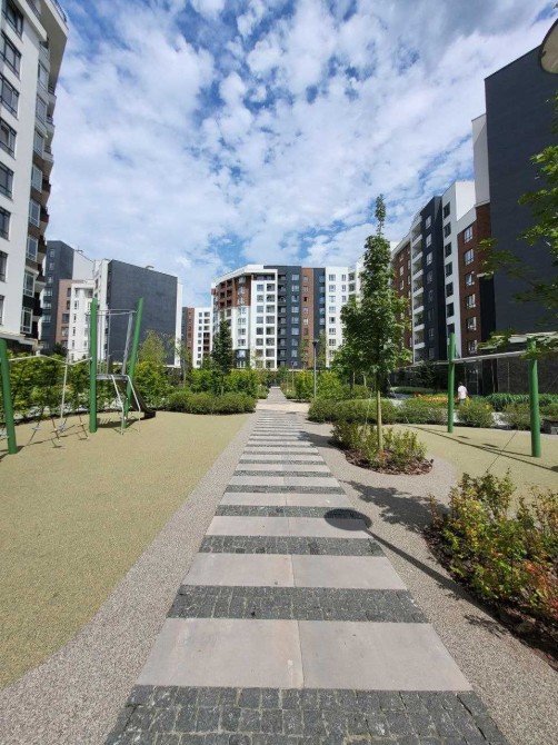 Всередині красива прибудинкова територія, безліч дитячих майданчиків та зон для відпочинку, тенісний корт, баскетбольний майданчик, аквапарк та Набережна Ірпеня в пішій доступності.