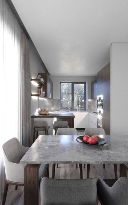4 окремі кімнати, кухня-вітальня 33 м2 з виходом на терасу.