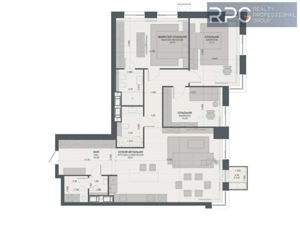 - Кухня-вітальня — 39.31 м²