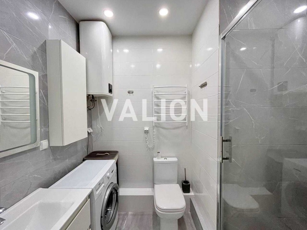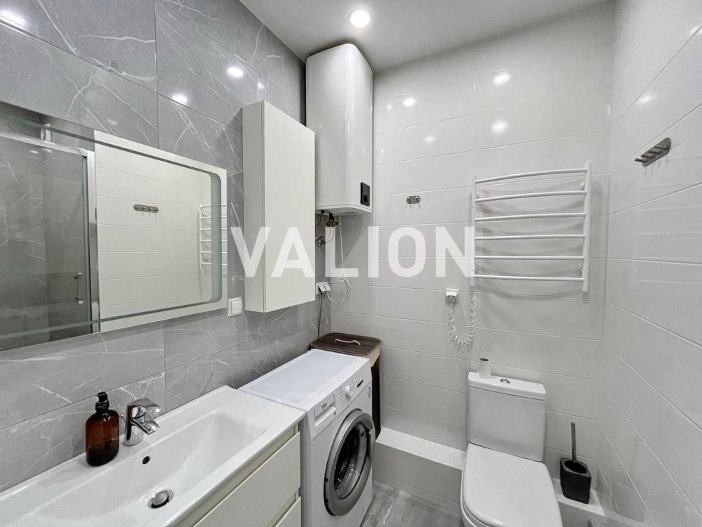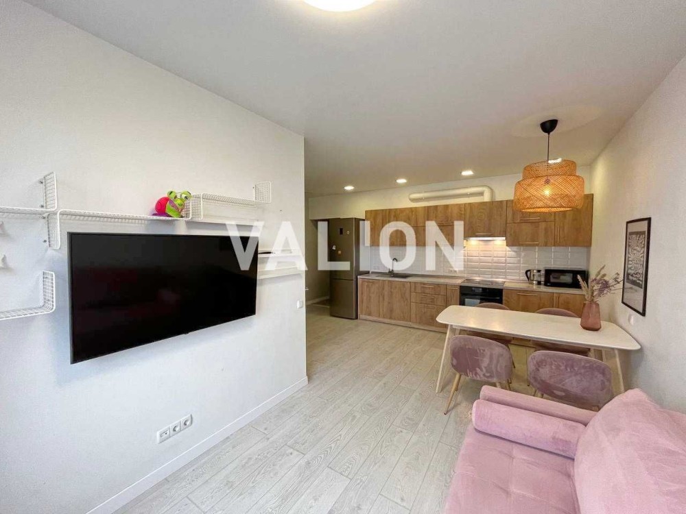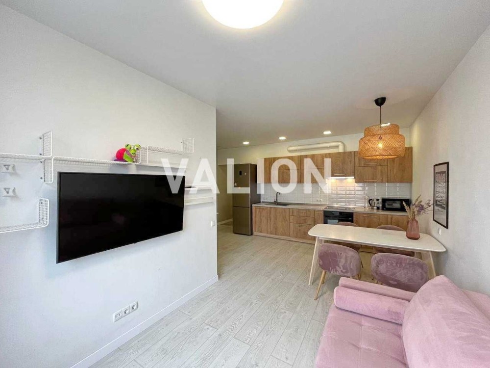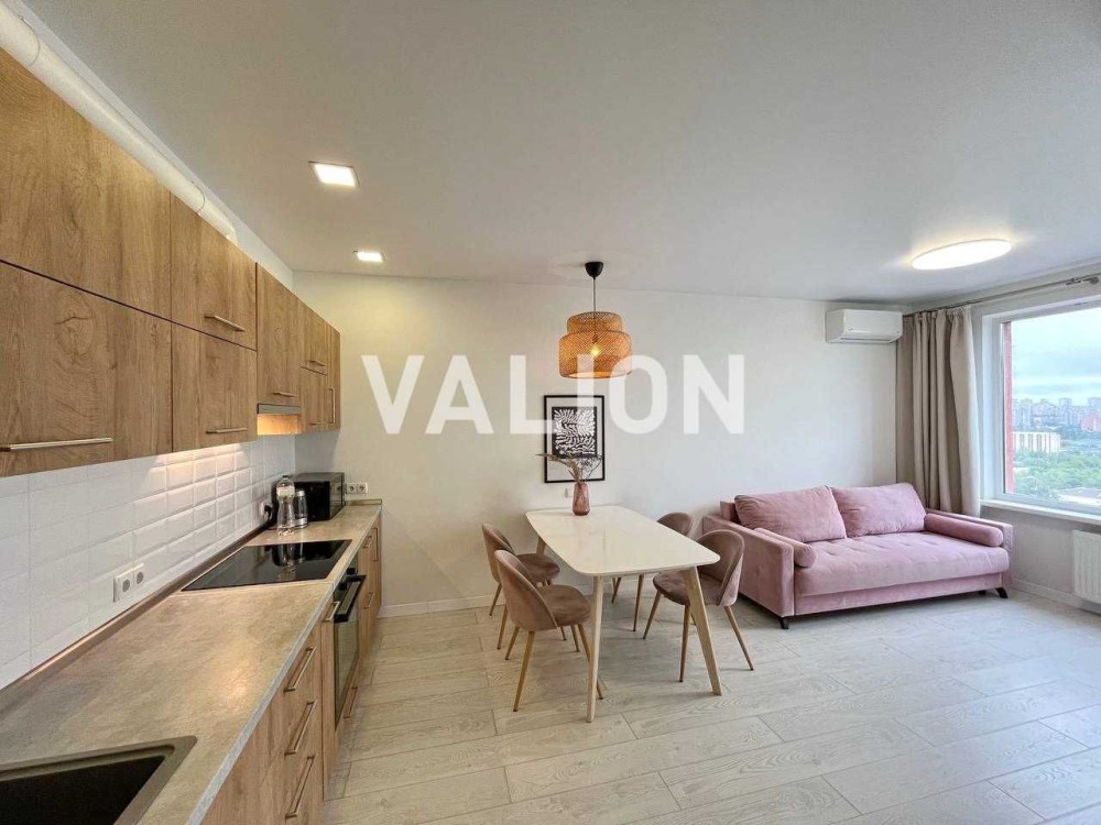 Без% Продажа 1к квартиры (евродвушка) с большой кухней-студией в Святошинском районе, ЖК "Грюнвальд" на ул. Клавдиевская, 40е. Расположена на 17 этаже 26-этажного утепленного дома. Общая площадь 41 кв.м., просторная и видовая. Оборудована качественной мебелью и техникой. Есть бойлер и кондиционер. Также особенностью квартиры является большая комната гардероб.